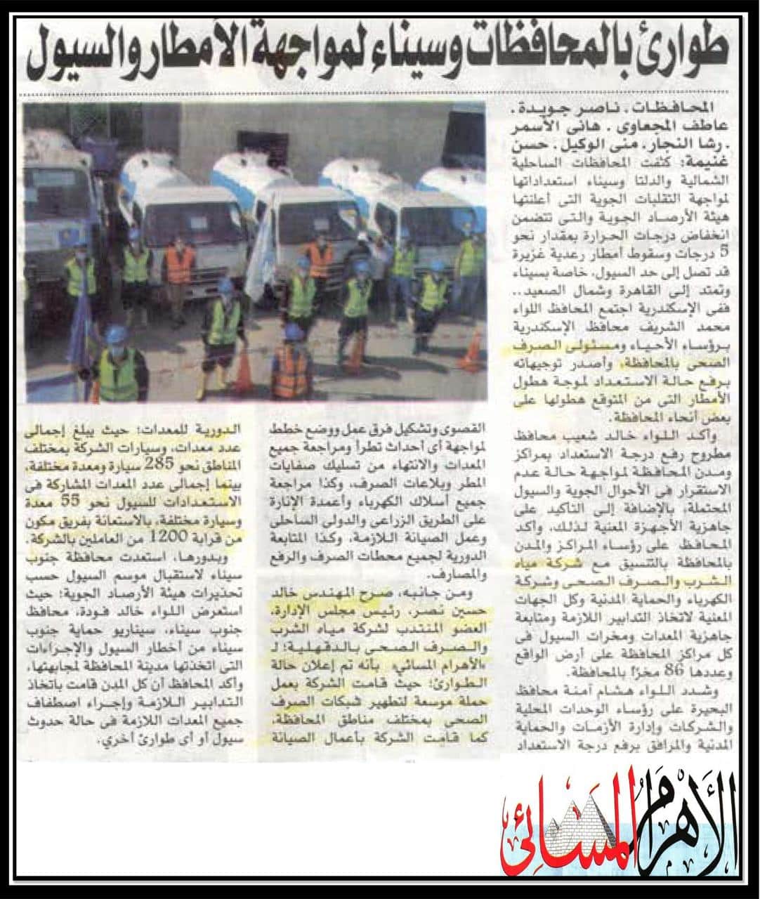 طوارئ بالمحافظات وسيناء لمواجهة الامطار والسيول .