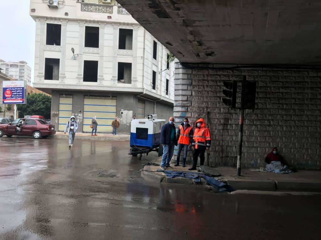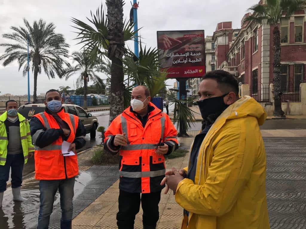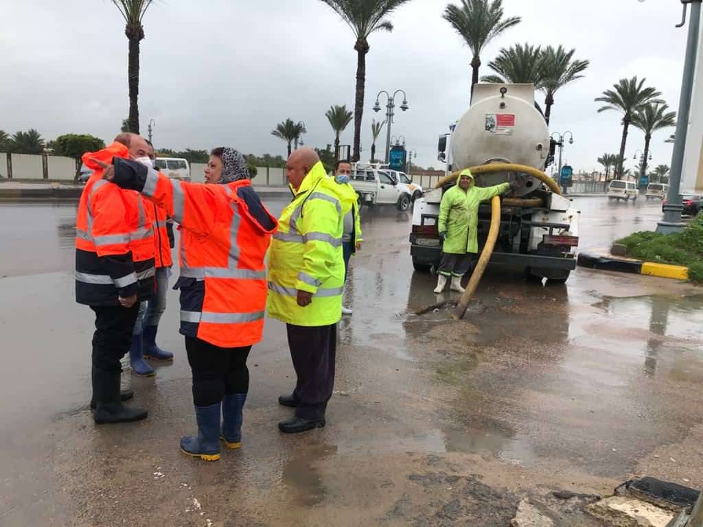 وتابع أنه يتم الدفع بحوالى 120 سيارة ومعدة وبدالة، والعمل على مدار الساعة، مع التنسيق الكامل مع أجهزة المحافظة، وشركة مياه الشرب والصرف الصحي بالإسكندرية.