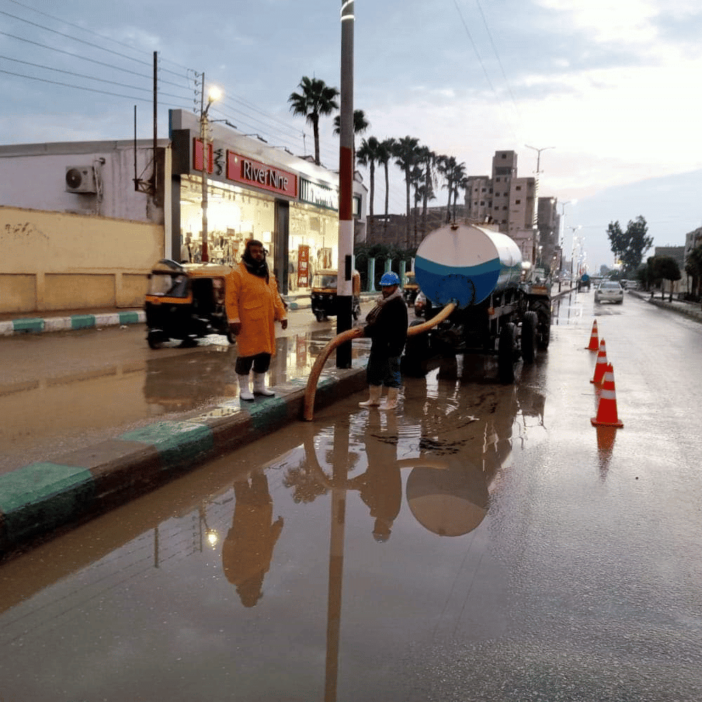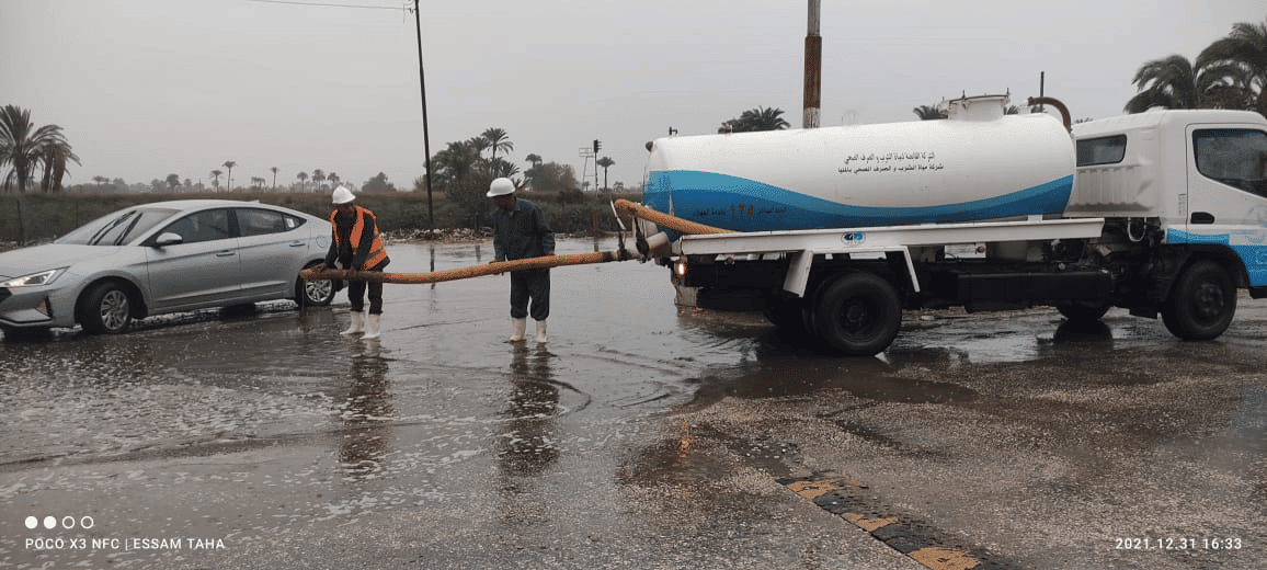ومن جانبه، تابع المهندس رجب السعيد رئيس شركة مياه الشرب والصرف الصحي بالمنيا، أعمال رفع تجمعات مياه الامطار بمراكز المحافظة، مشيرا إلى استمرار فرق الطوارئ رفع تجمعات مياه الأمطار بمراكز المنيا من خلال انتشار وتمركز المعدات بمناطق تجمع مياه الأمطار والطرق الرئيسية والميادين والكباري والانفاق وكذلك تشكيل لجنة ادارة ازمات بالشركة تتابع المستجدات باستمرار مع غرفة عمليات المحافظة والخاصة بتحذيرات هيئة الأرصاد الجوية باستمرار تساقط الأمطار.
