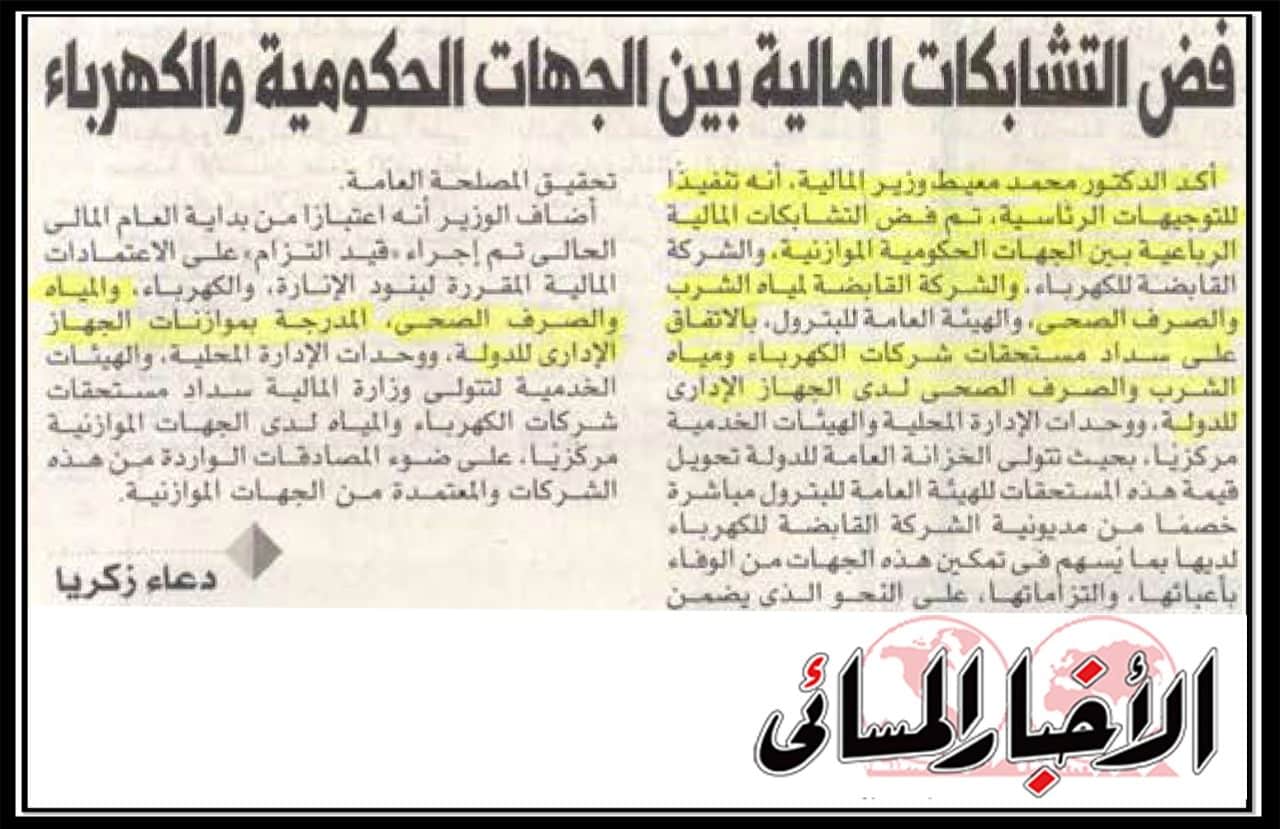 فض التشابكات المالية بين الجهات الحكومية والكهرباء