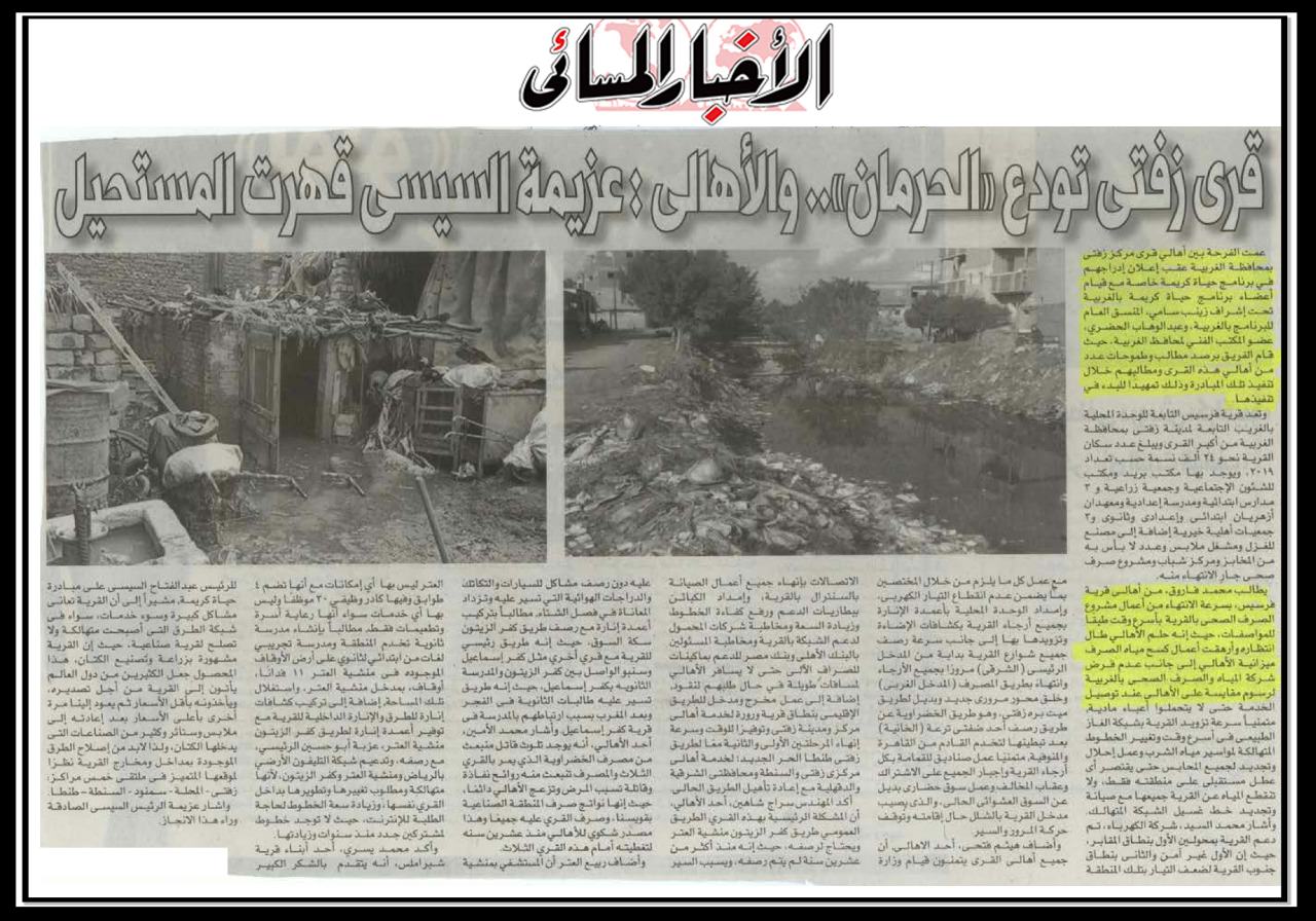 قرى زفتى تودع الحرمان …ولااهالي عزيمة السيسي: قهرت المستحيل .
