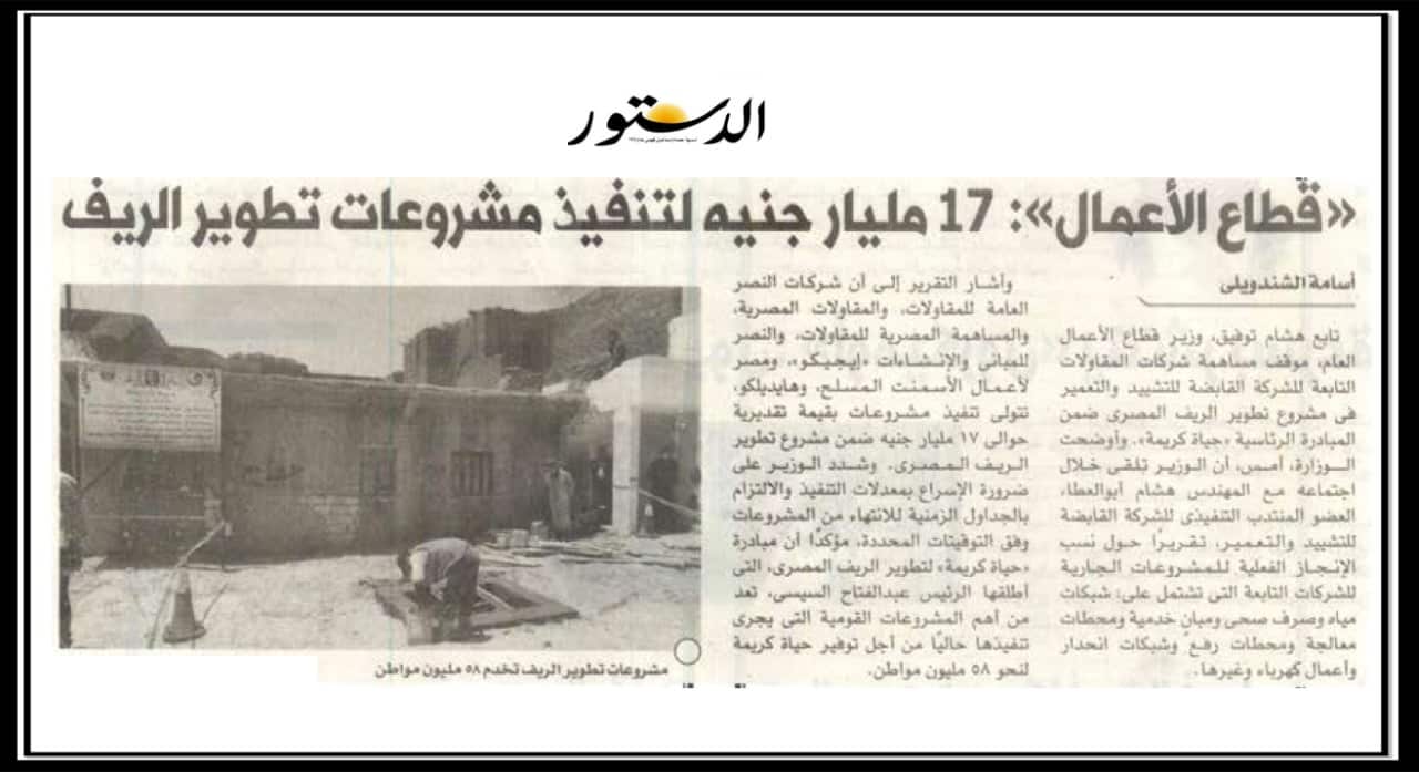 قطاع الاعمال: 17 مليار جنية لتنفيذ مشروعات تطوير الريف