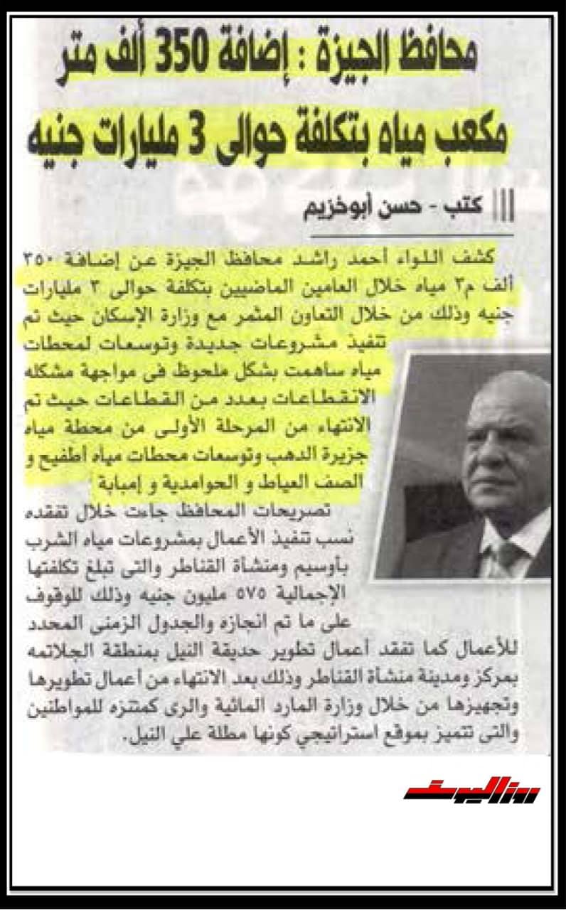 كحافظ الجيزة : إاضافة 350 الف متر مكعب مياه بتكلفة 3 مليارات جنية .