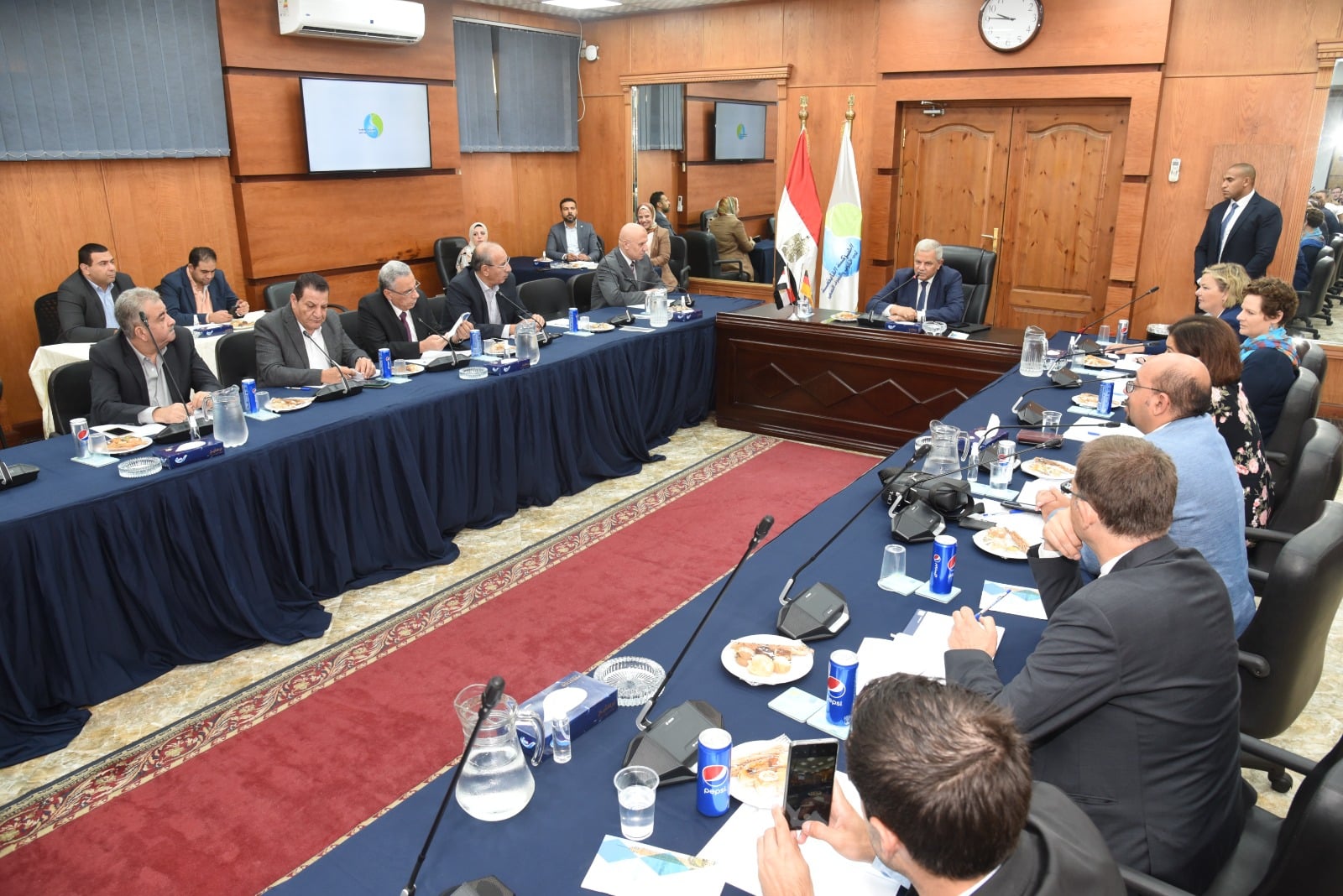 وناقش الاجتماع الذى حضره قيادات الشركة القابضة من قطاعات التعاون الدولى والبحوث والتطوير والتشغيل والصيانة والمكتب الفنى، مع الوفد الألمانى امكانية نقل التكنولوجيات المبتكرة فى معالجة حمأة الصرف الصحى واسترجاع الطاقه منها وكذا انتاج السماد العضوى الأمن للاستخدامات الزراعية، كما تم مناقشه تكنولوجيات الصرف الصحى للتجمعات الصغيرة compact units.