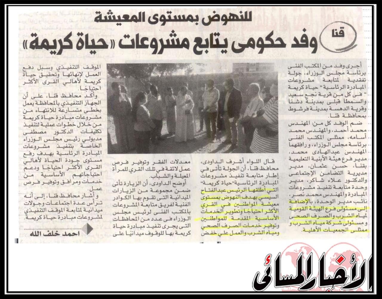 للنهوض بمستوى المعيشة … قنا .. وفد حكومي يتابع مشروعات ” حياة كريمة “
