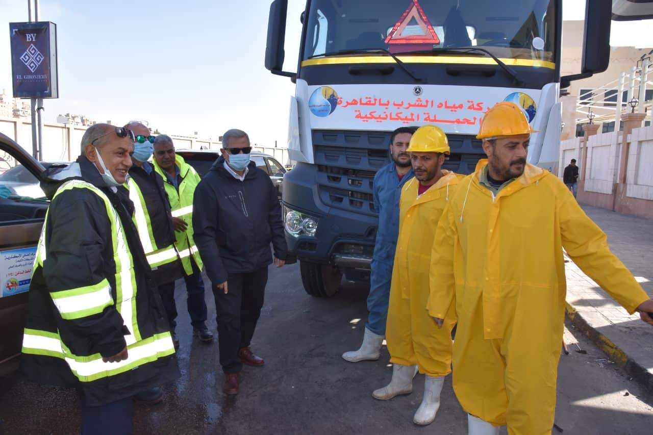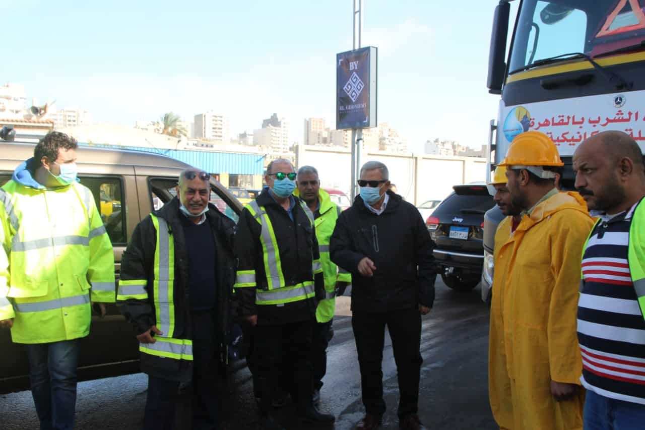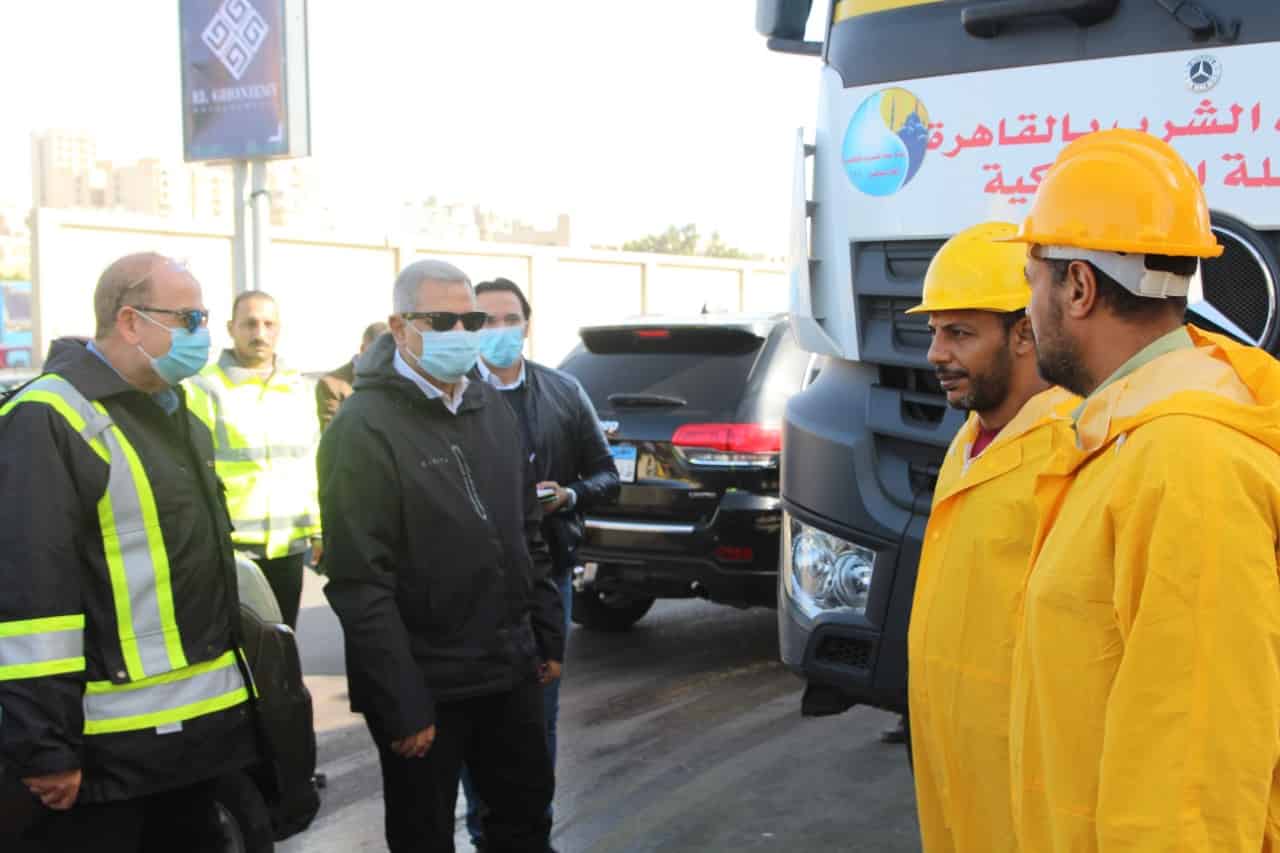 كما تفقد مواقع تمركزات المعدات والبدلات التى تم الدفع بها من شركة مياه الشرب بالقاهرة، للاستعانة بها للتعامل مع موجة التقلبات الجوية.