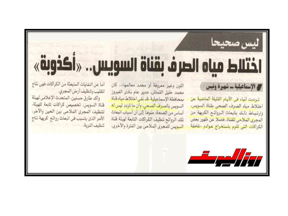 ليس صحيحاً :اختلاط مياه الصرف بقناة السويس … ” اكذوبة “