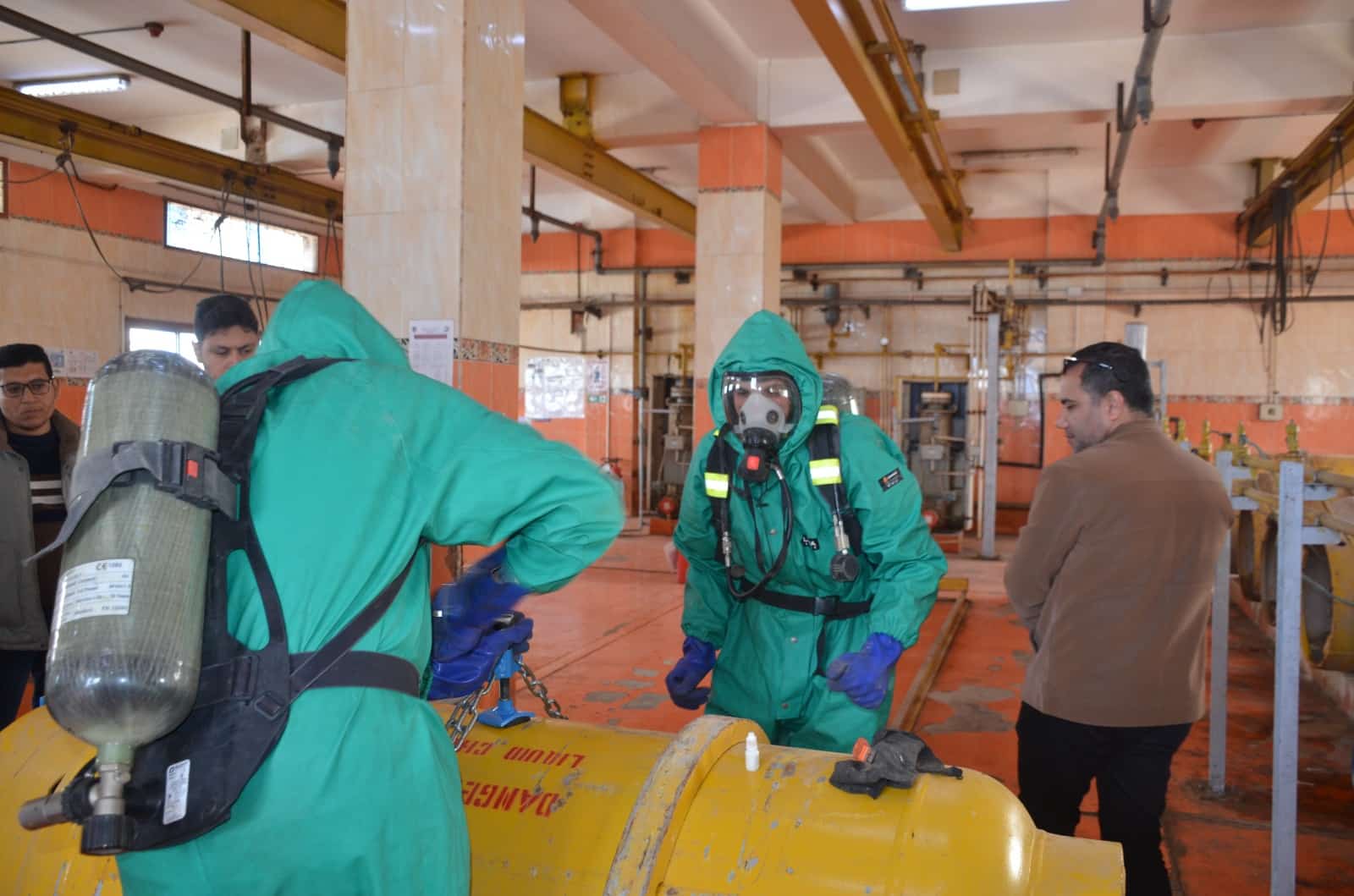 وفي هذا الإطار، قام فريق من الإدارة العامة للسلامة والصحة المهنية بالشركة القابضة لمياه الشرب والصرف الصحي، بزيارة ميدانية إلى محطات مياه إمبابة وجزيرة الدهب والجيزة، التابعة لشركة مياه الشرب والصرف الصحي بالجيزة، لمتابعة سير العمل بالمنظومة، وتدريب العاملين على إجراءات السلامة الصحيحة عند التعامل مع الكلور لضمان سلامتهم وسلامة المنشآت.