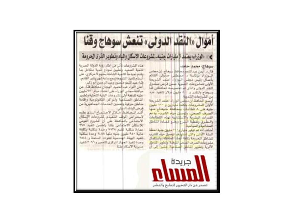 مجلس الورزاء: يعتمد 3 مليارات جنية لمشروعات الاسكان والمياه وتطوير القرى المحرومة .
