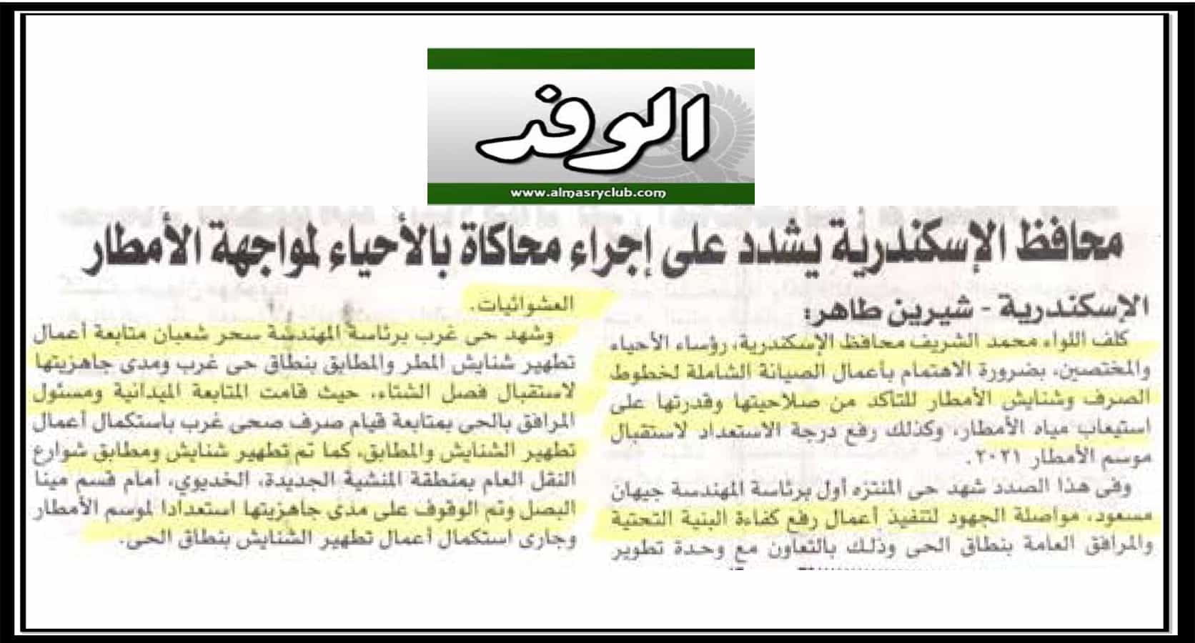 محافظ الاسكندرية يشدد على اجراء محاكاة بالاحياء لمواجهة الامطار