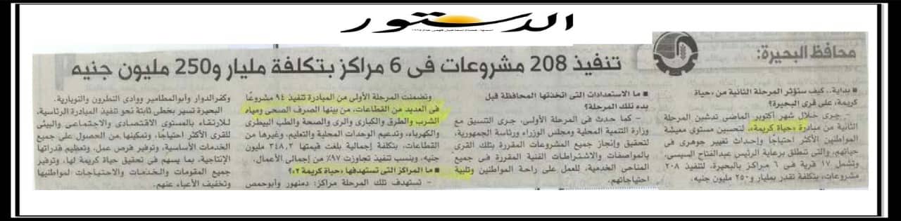 محافظ البحيرة : تنفيذ 208 مشروعات في 6 مراكز بتكلفة مليار و250 مليون جنية .