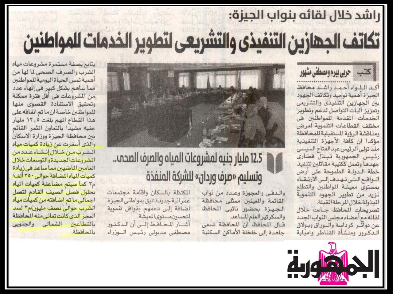 محافظ الجيزة خلال لقائة بنواب الجيزة … تكاتف الجهازين التنفيذي والتشريعي لتطوير الخدمات للمواطنين .