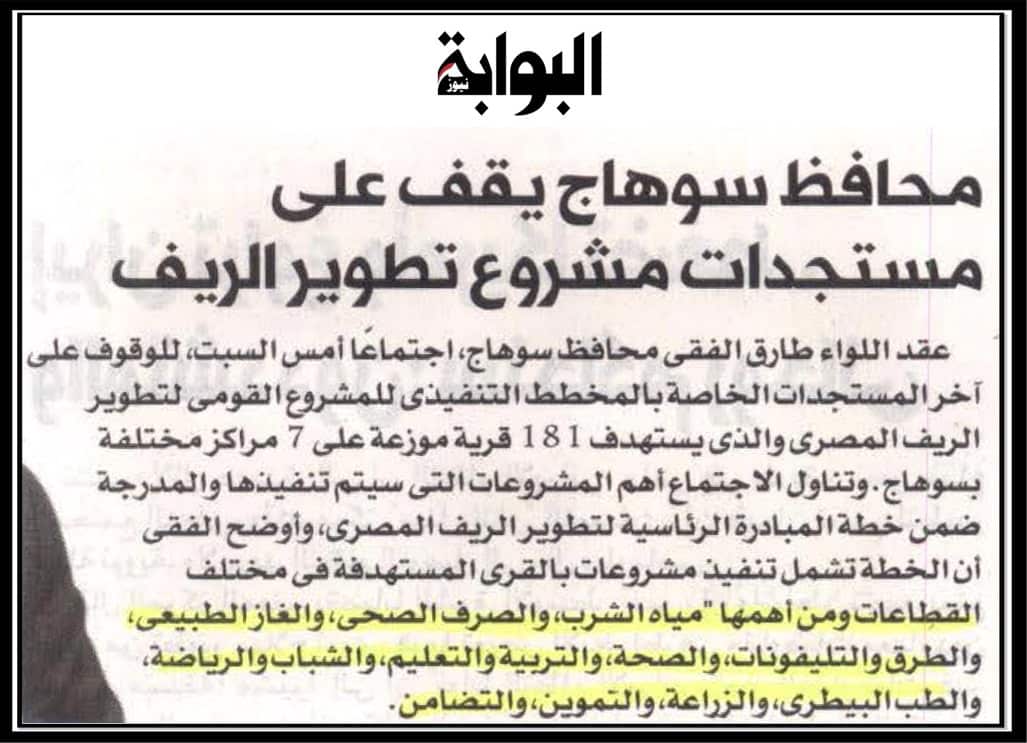 محافظ سوهاج يقف على مستجدات مشروع تطوير الريف .