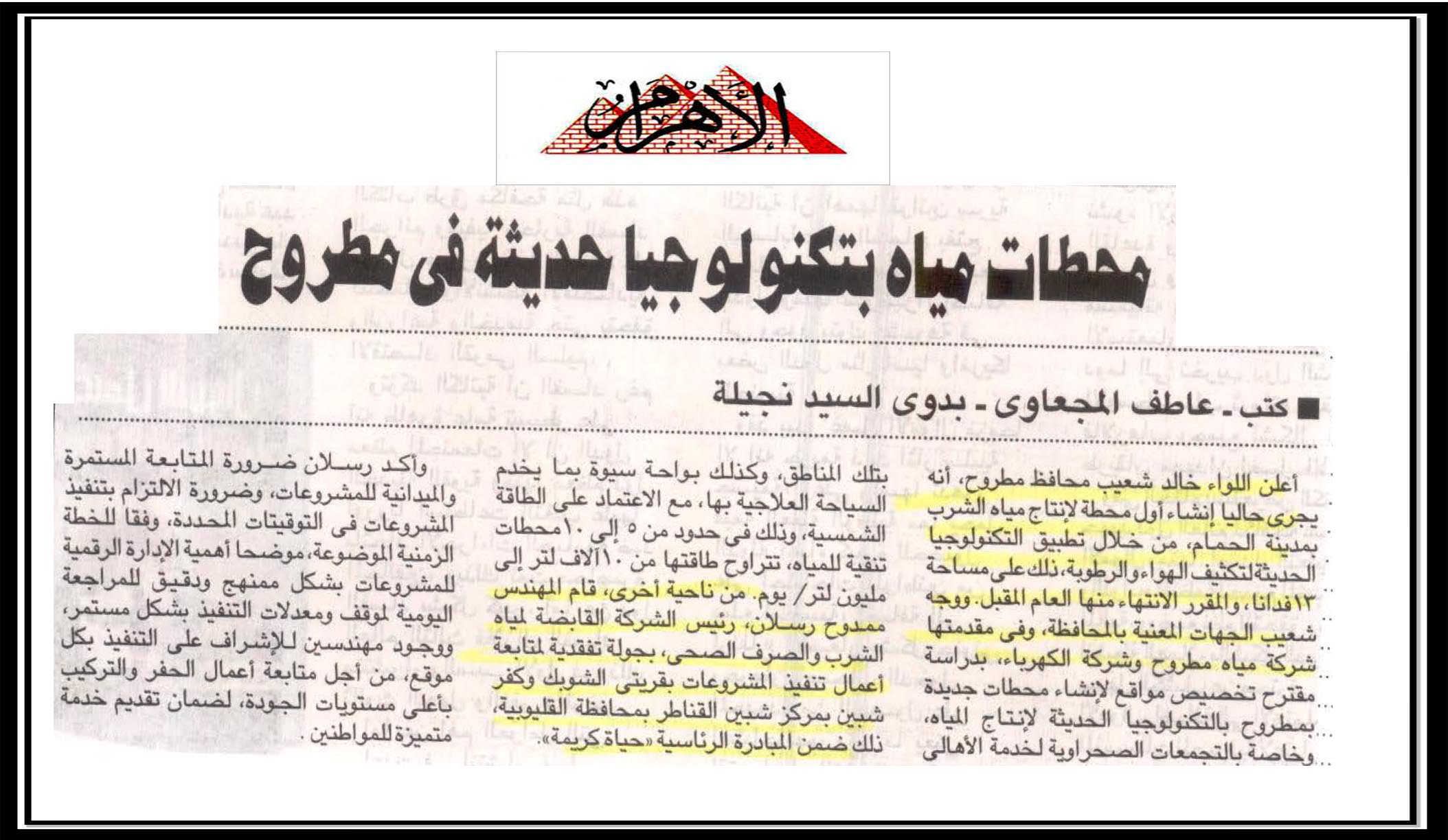 محطات مياه بتكنولوجيا حديثة بمطروح