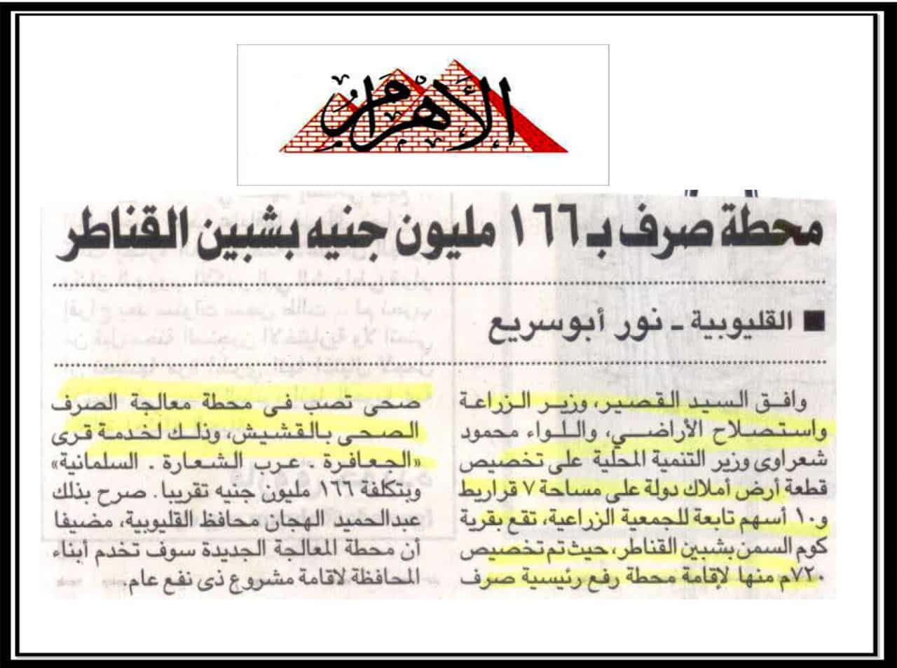 محطة صرف ب 166 مليون جنية بشبين القناطر