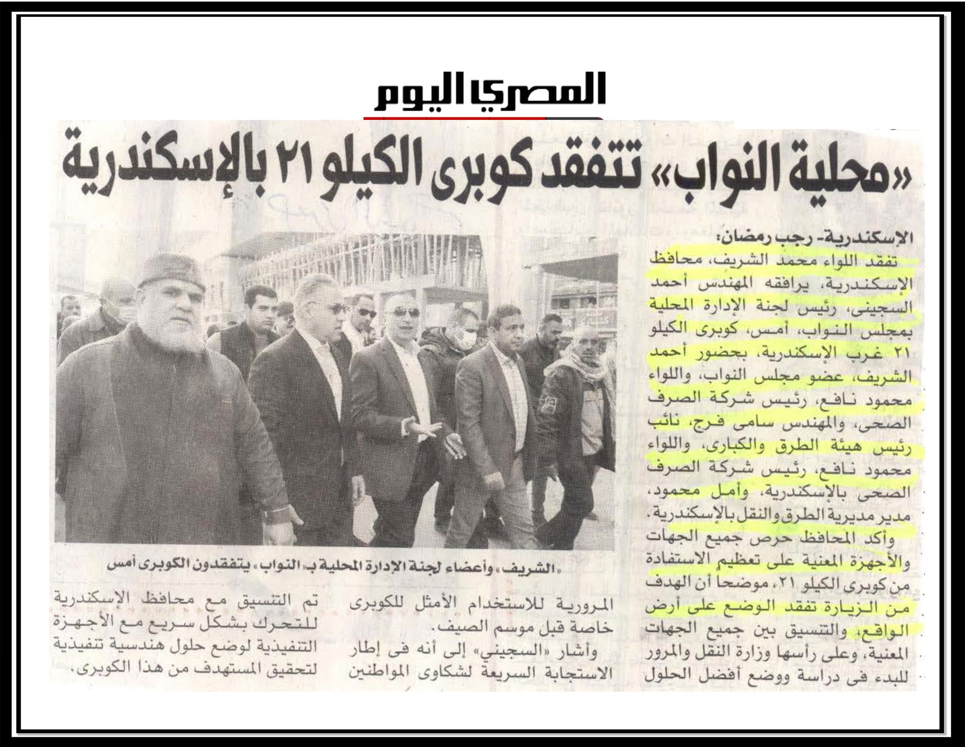 محلية النواب تتفقد كوبري الكيلو 21 بالاسكندرية .