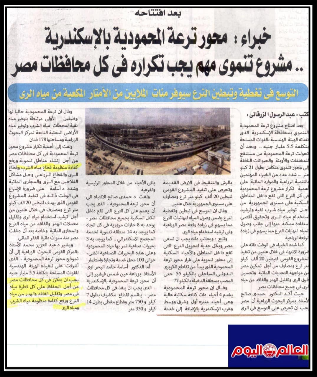 محور ترعة المحمودية بالاسكندرية …مشروع تنموي مهم يجب تكراره في كل محافظات مصر .