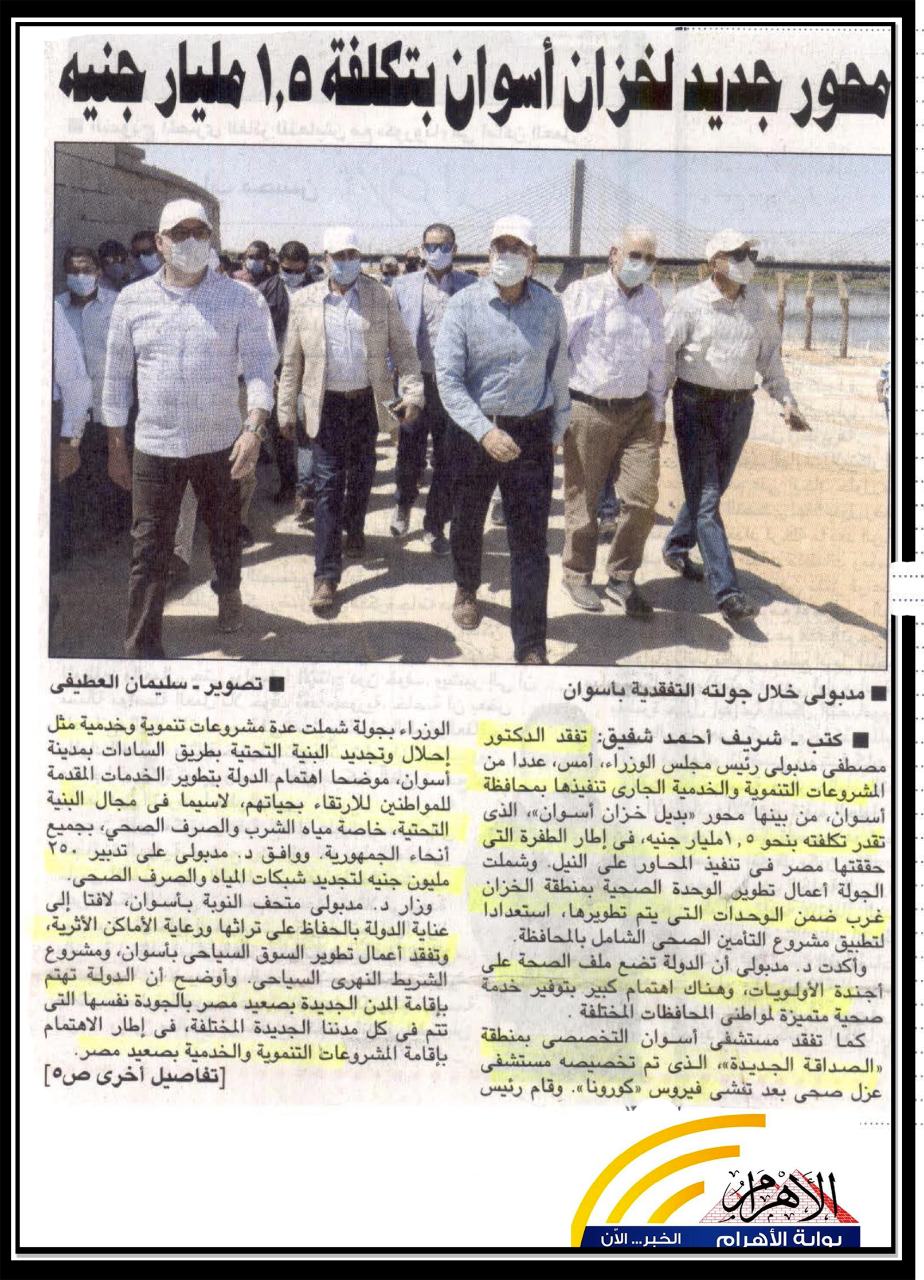 محور جديد لخزان أسوان بتكلفة 1.5 مليار جنية .