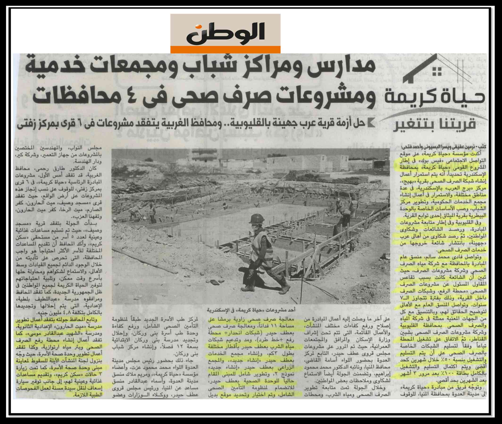 مدارس ومراكز شباب ومجمعات خدمية ومشروعات صرف صحي في 4 محافظات