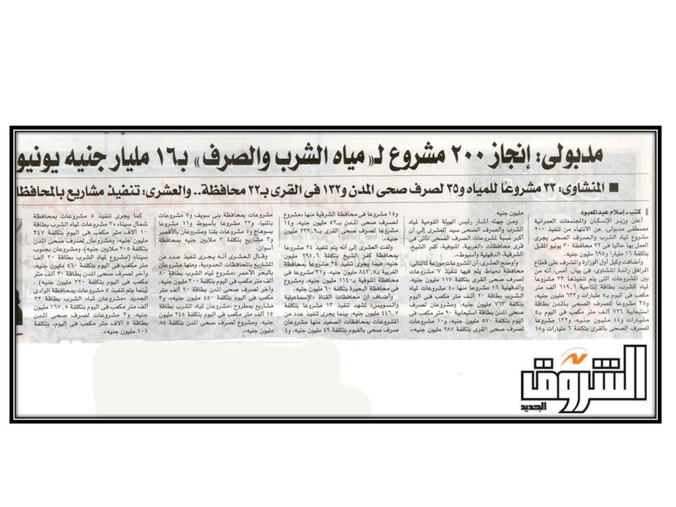 مدبولي : انجاز 200 مشروع لمياه الشرب والصرف بــ16 مليار جنية يونيو المقبل .