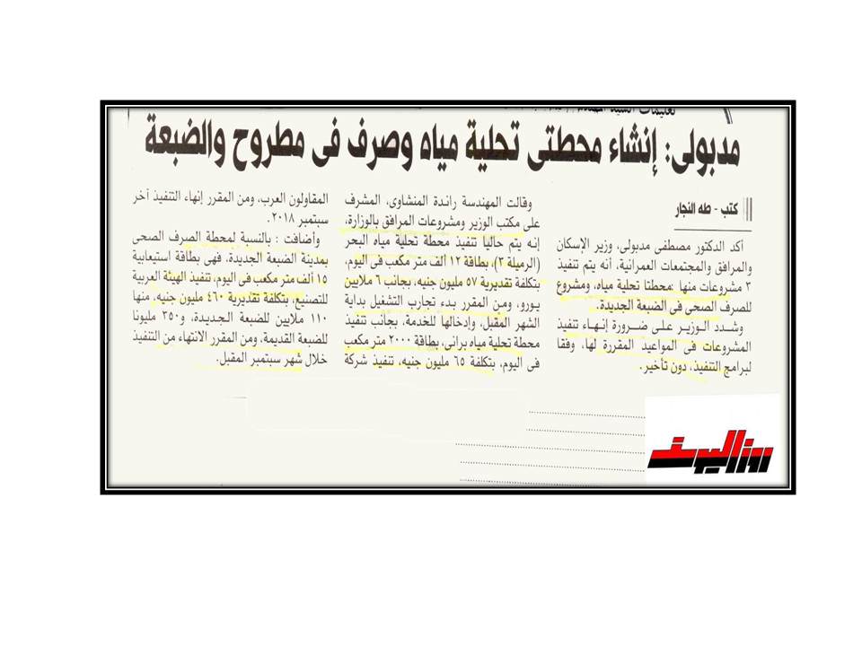 مدبولي : انشاء محطتي تحلية مياه وصرف في مطروح والضبعة .