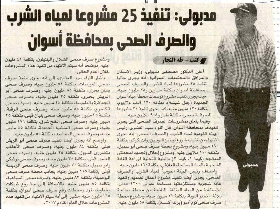 مدبولي : تنفيذ 25 مشروعا لمياه الشرب والصرف الصحي بمحافظة أسوان