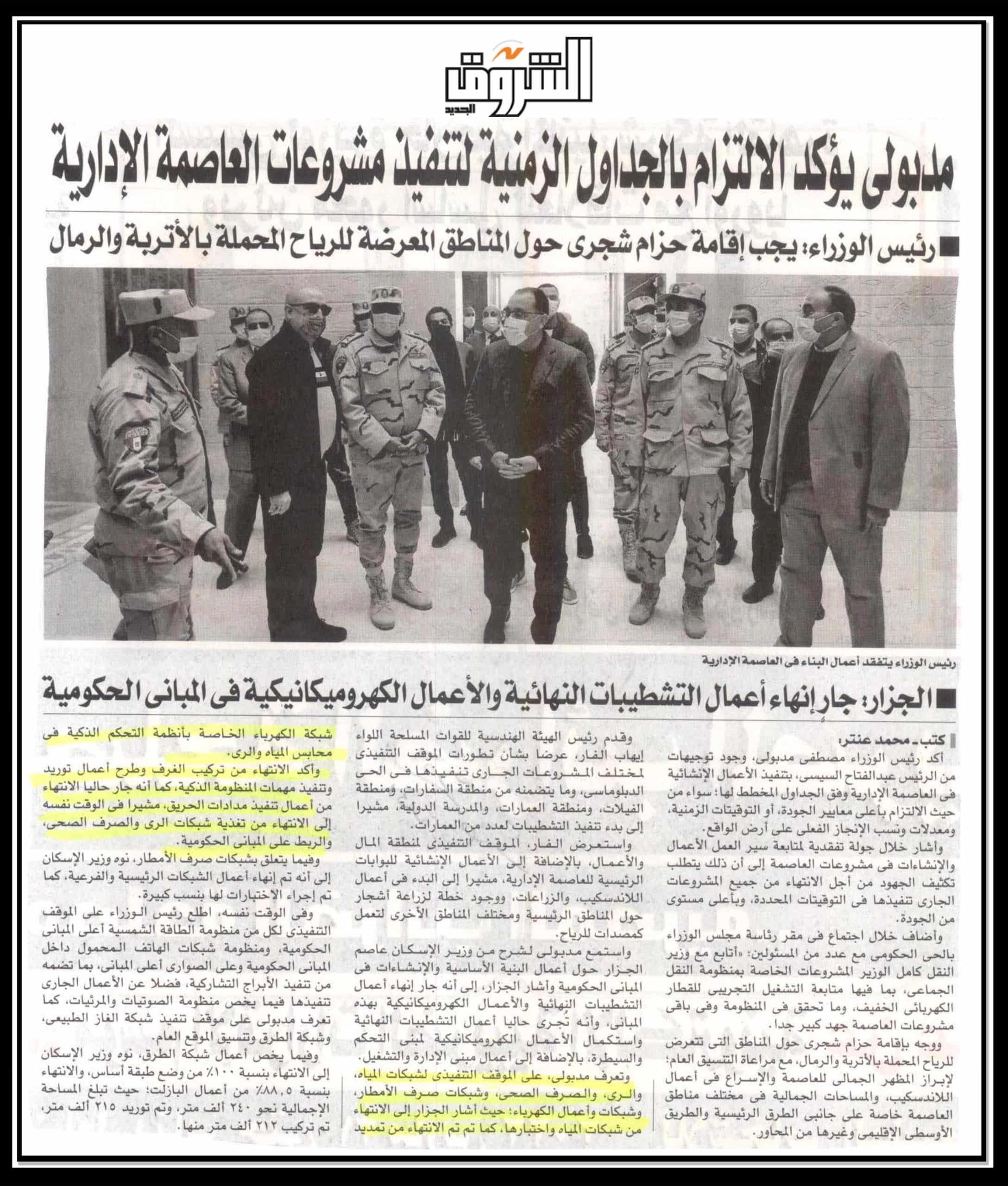 مدبولي يؤكد الالتزام بالجداول الزمنية لتنفيذ مشروعات العاصمة الادارية .