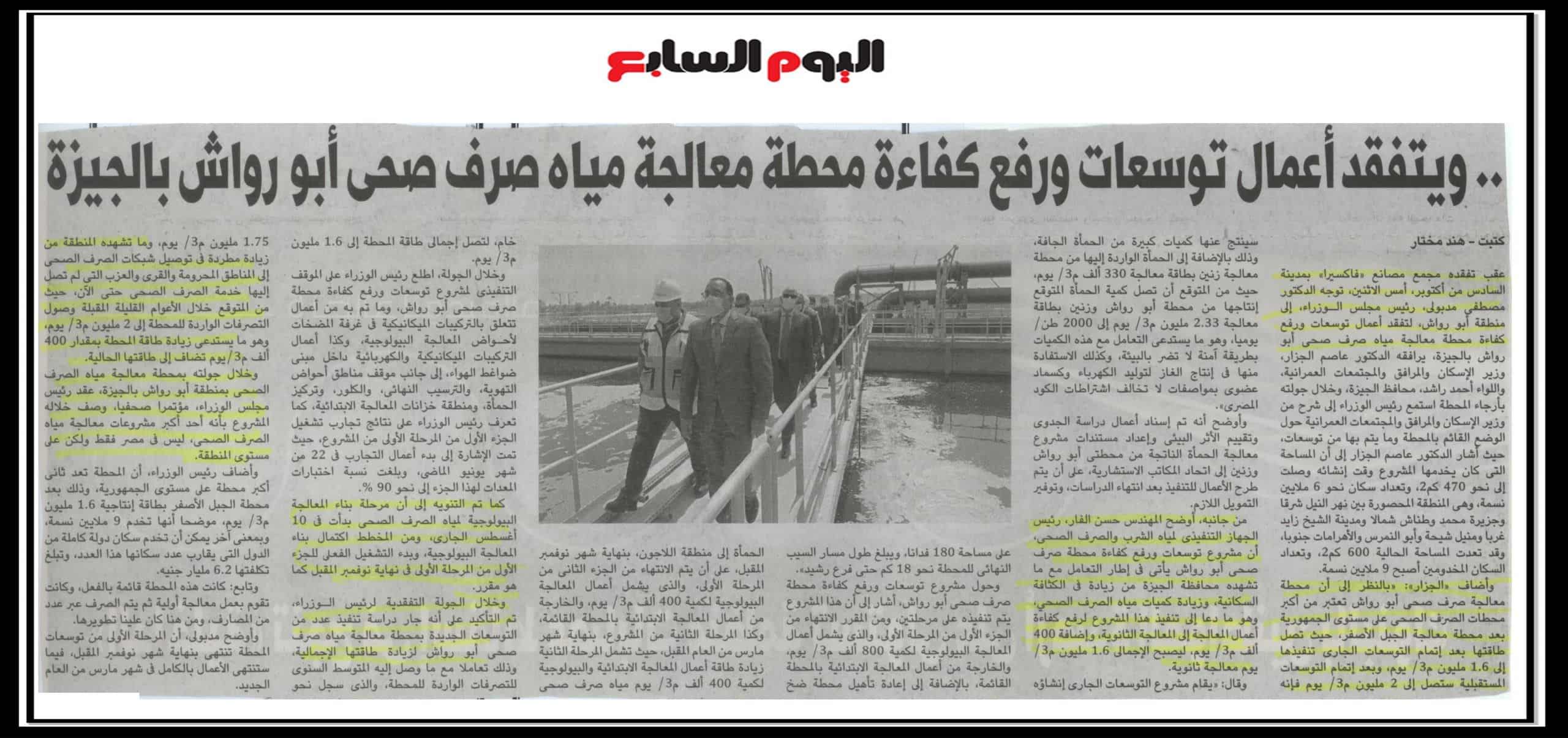 مدبولي يتفقد اعمال توسعات ورفع كفاءة محطة معالجة مياه صرف صحي ابو رواش بالجيزة