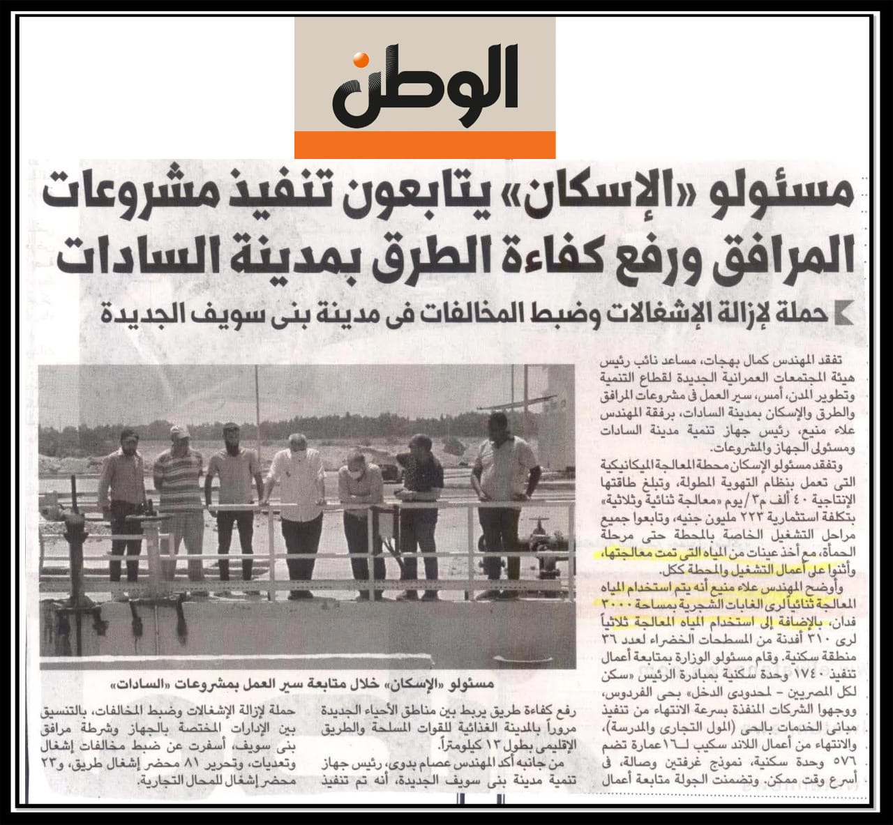 مسئولو الاسكان يتابعون تنفيذ مشروعات المرافق ورفع كفاءة الطرق بمدينة السادات