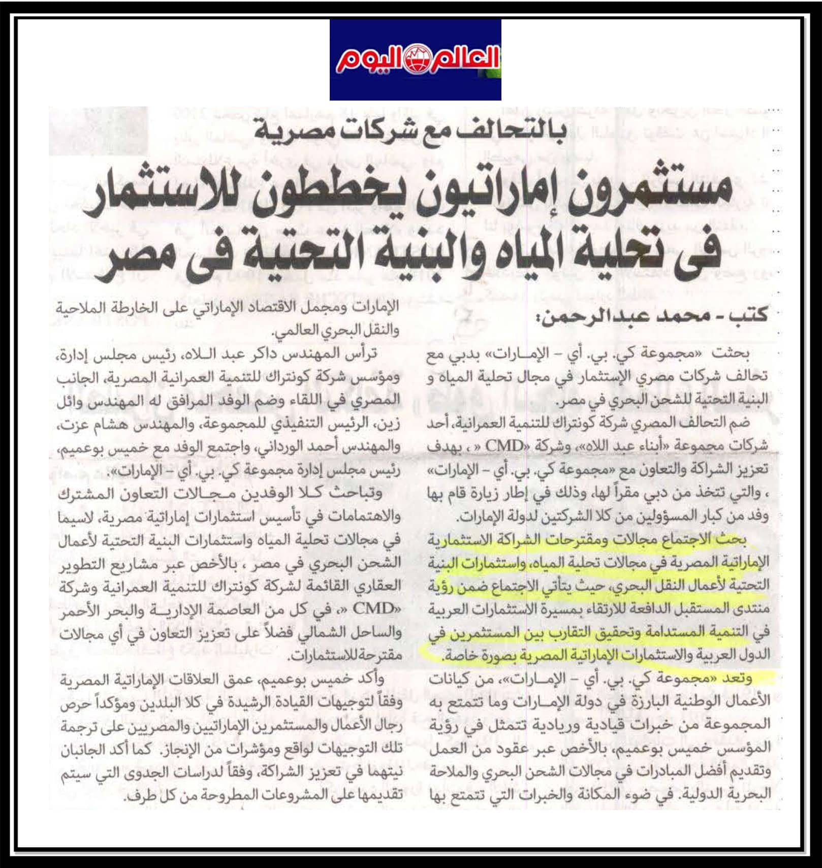 مستثمرون إمارتيون يخططون للاستثمار في تحلية المياه والبنية التحتية في مصر.