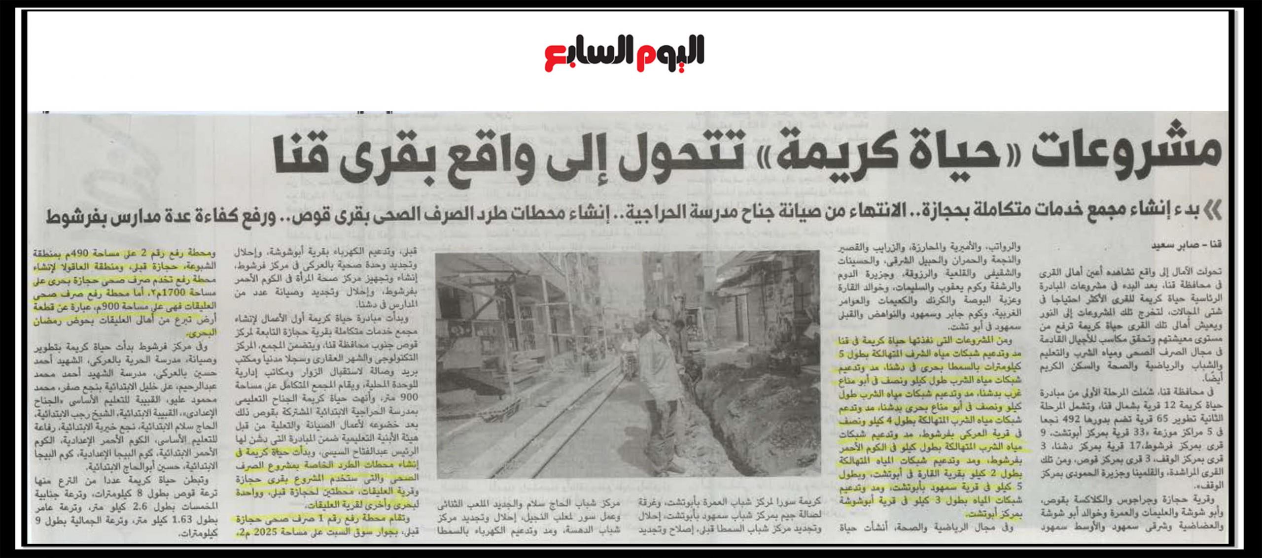 مشروعات حياة كريمة تتحول الى واقع بقرى قنا