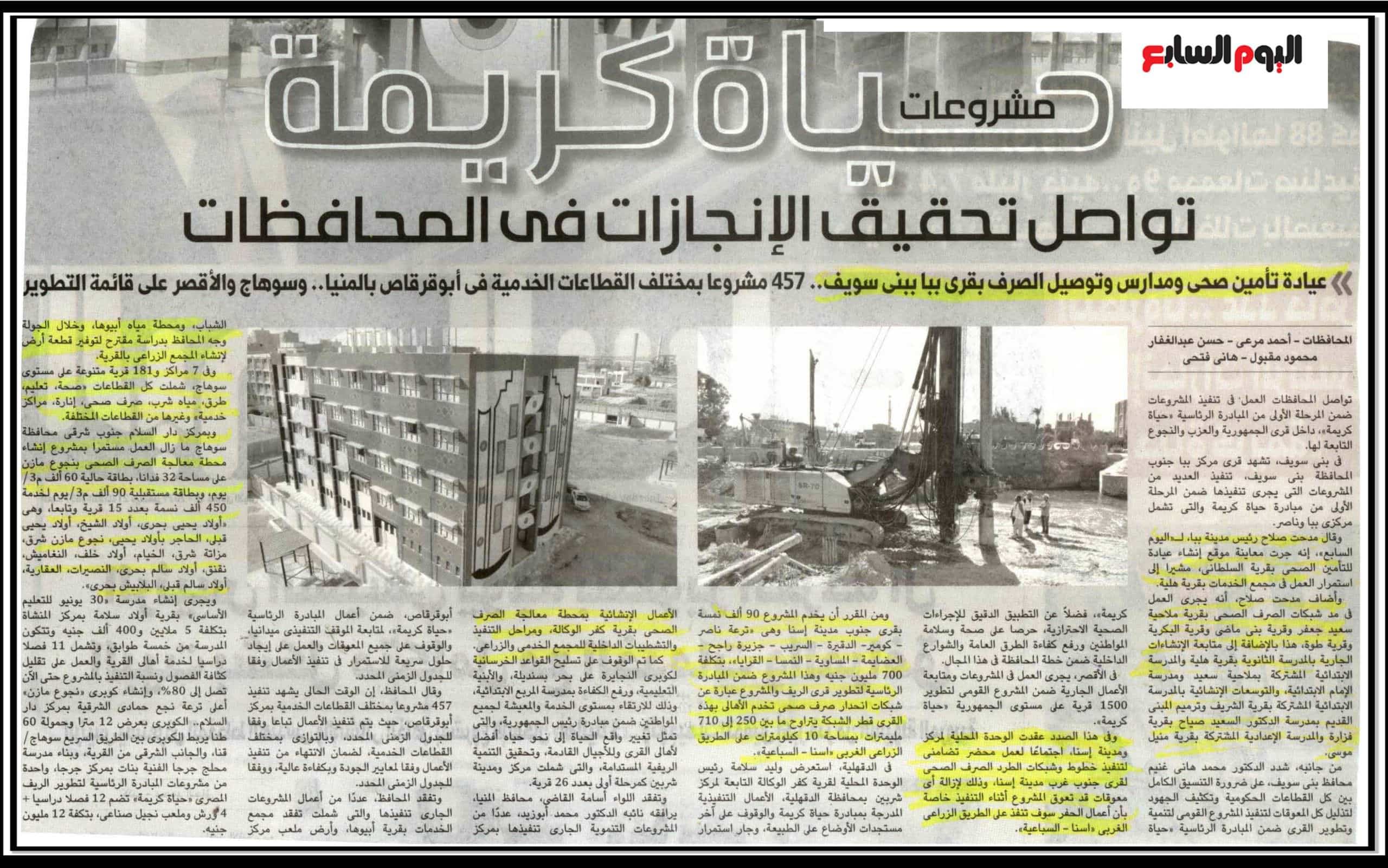 مشروعات حياة كريمة تواصل تحقيق الانجازات في المحافظات