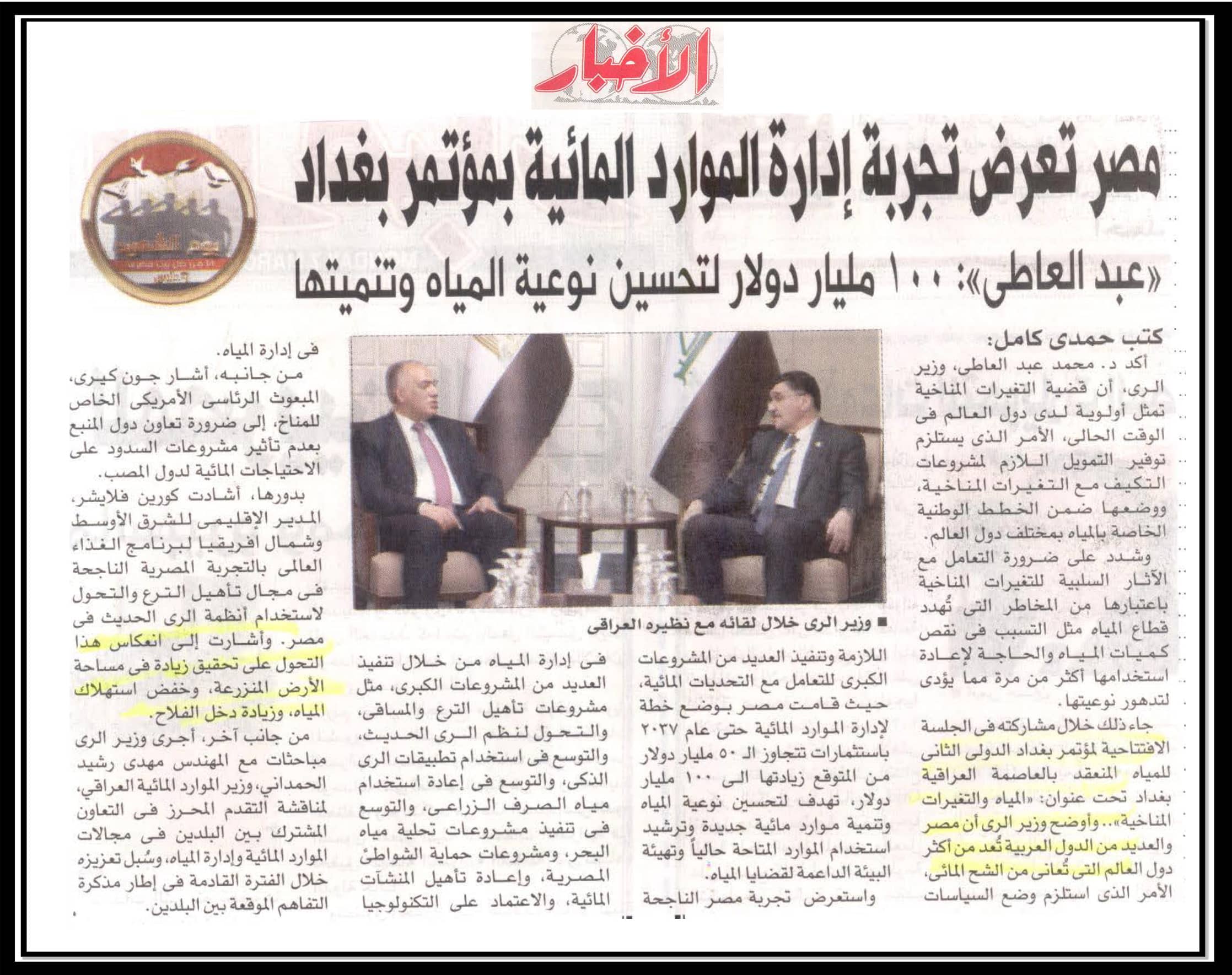 مصر تعرض تجربة إدارة الموارد المائية بمؤتمر بغداد .