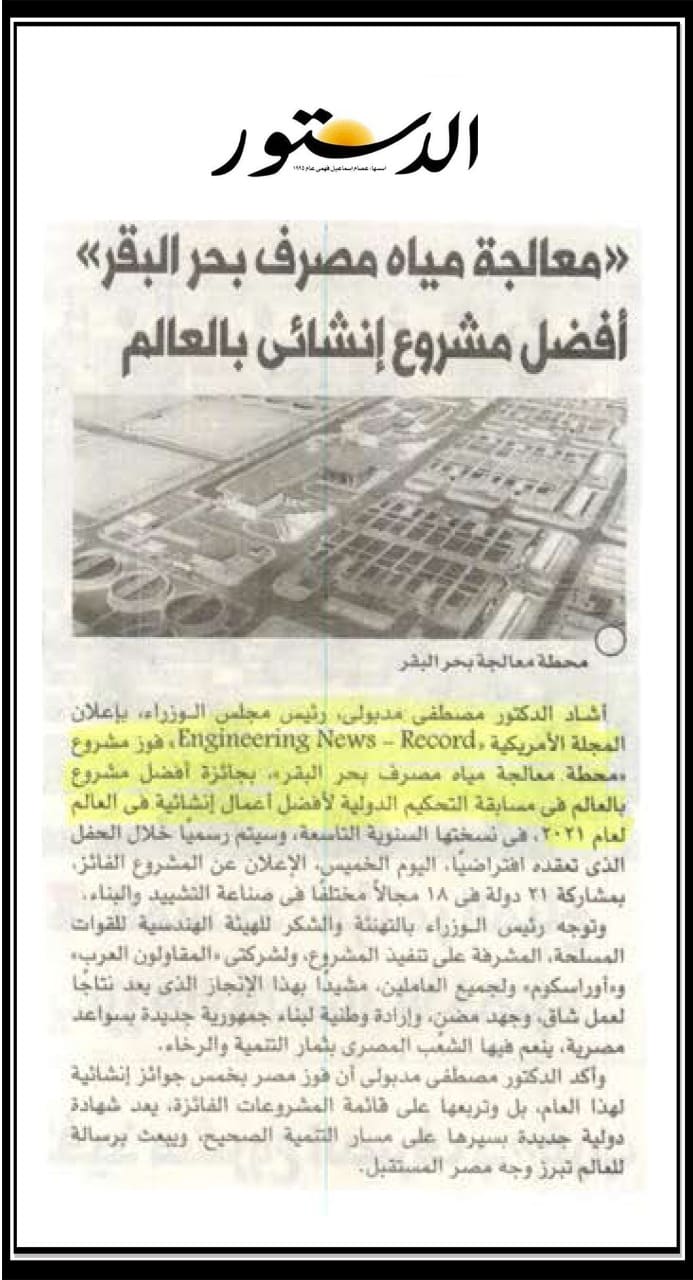 معالجة مياه مصرف بحر البقر افضل مشروع انشائي بالعالم