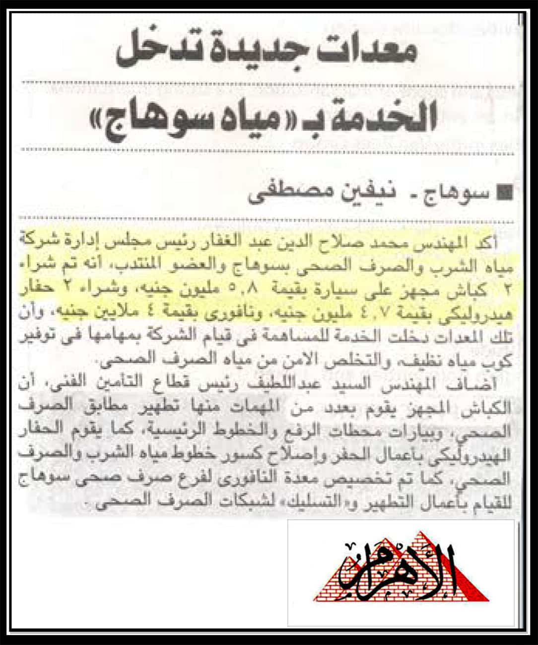 معدات جديدة تدخل الخدمة بـ مياه سوهاج.