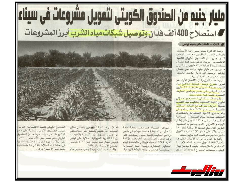 مليار جنية من الصندوق الكويتي لتمويل مشروعات سيناء وتوصيل شبكات مياه الشرب .