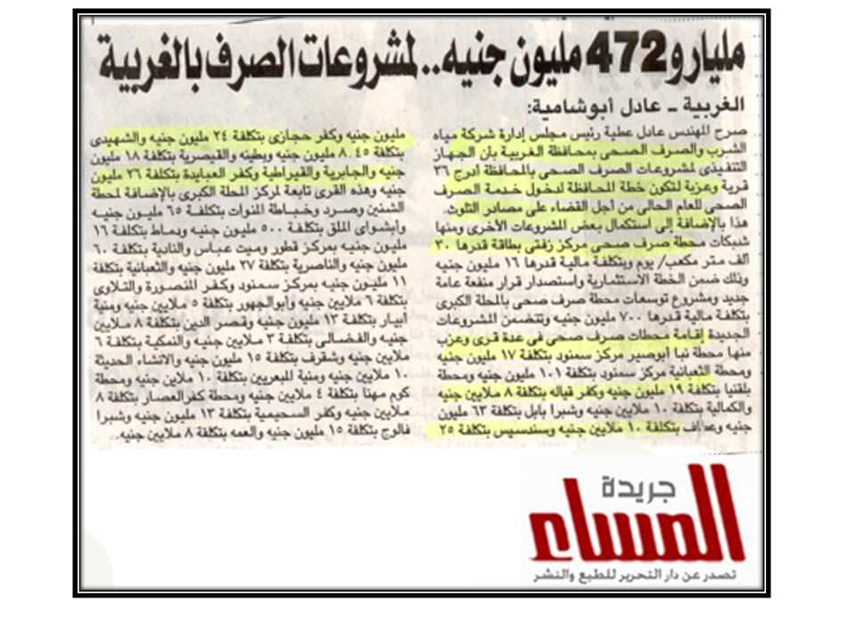 مليار و472 مليون جنية ….لمشروعات الصرف بالغربية ….