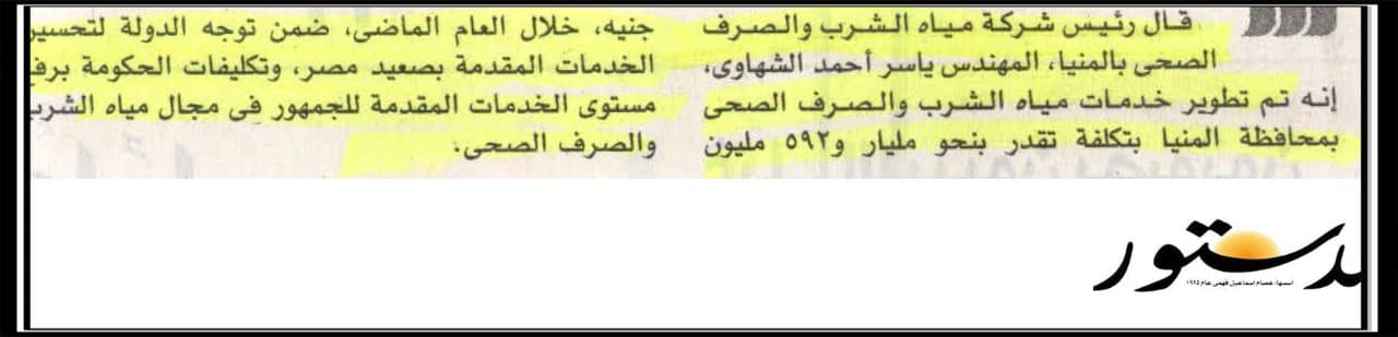 مليار و592 مليون جنيه لخدمات المياه بالمنيا .