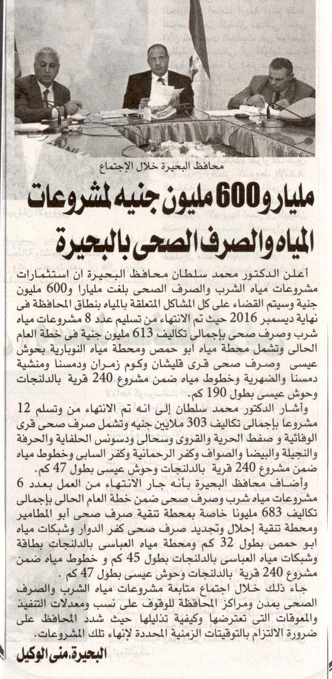 مليار و600 مليون جنية لمشروعات المياه والصرف بالبحيرة