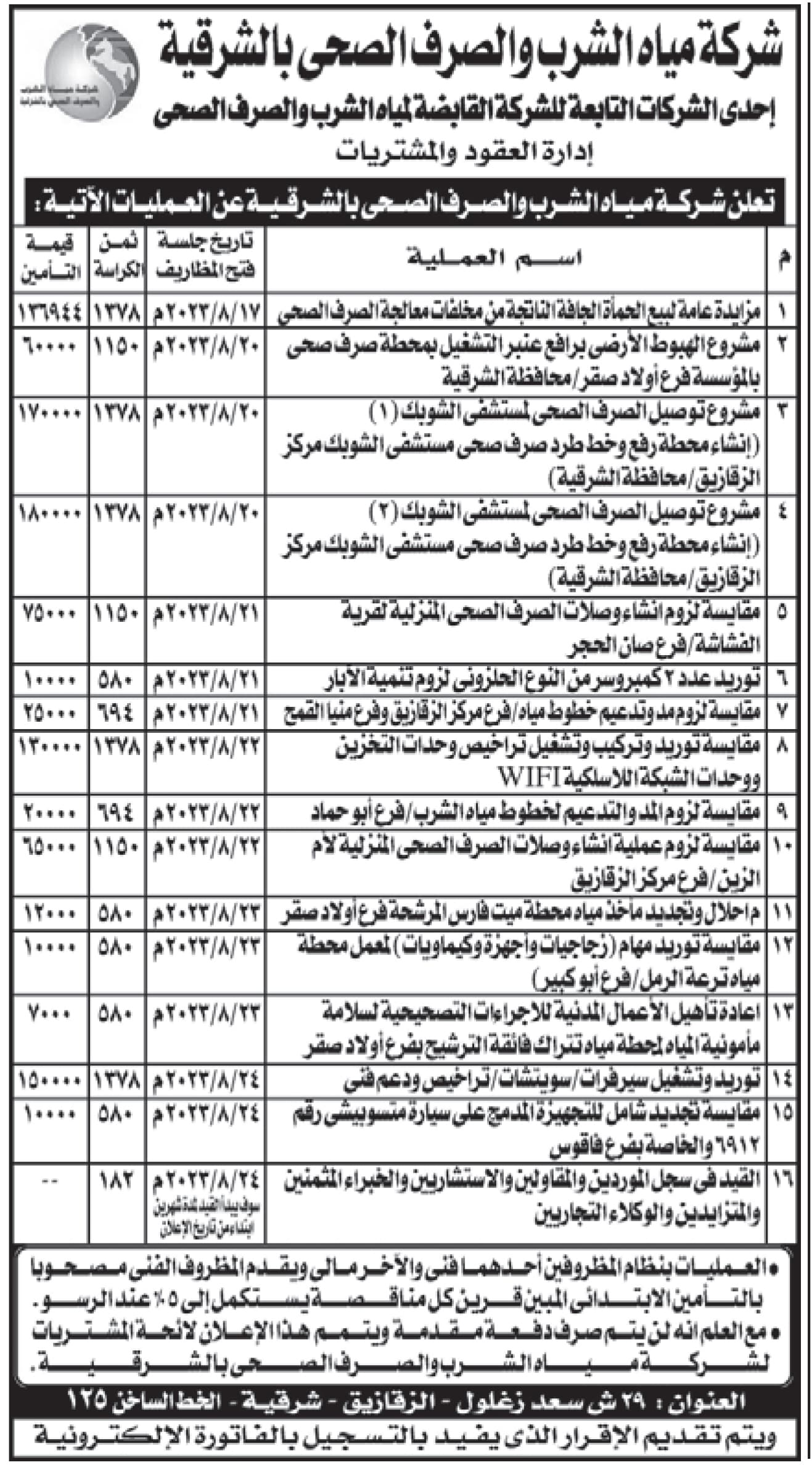 مناقصة عامة : شركة مياه الشرب والصرف الصحي بالشرقية. 02/08/2023|Tags: جريدة الجمهورية| Related Posts مناقصة عامة: شركة مياه الشرب والصرف الصحى بمطروح 12/01/2026 مناقصة عامة: شركة مياه الشرب والصرف الصحى بكفر الشيخ 01/01/2026 مناقصة عامة: شركة مياه الشرب والصرف الصحى بمحافظات القناة 01/01/2026 مناقصة عامة: شركة مياه الشرب والصرف الصحى بالأقصر 24/12/2025 مناقصة عامة: شركة مياه الشرب والصرف الصحى بالشرقية 23/12/2025 مناقصة عامة: شركة مياه الشرب والصرف الصحى بالشرقية 18/12/2025 مناقصة عامة: شركة مياه الشرب والصرف الصحى بالأقصر 10/11/2025 مناقصة عامة: شركة مياه الشرب والصرف الصحى بالمنيا 05/11/2025