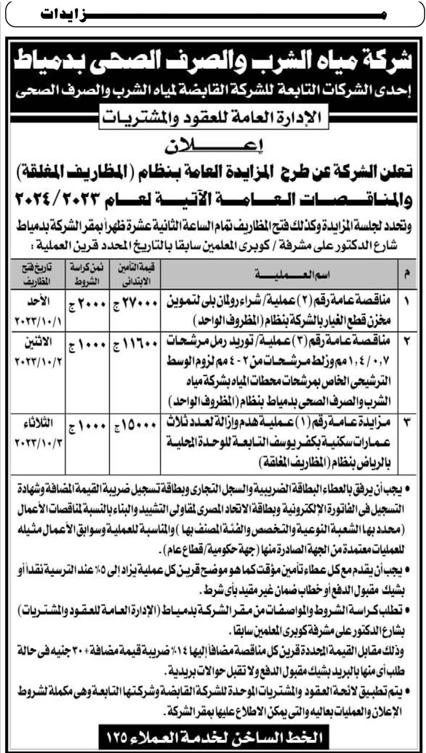 مناقصة عامة : شركة مياه الشرب والصرف الصحي بدمياط. 11/09/2023|Tags: جريدة الجمهورية| Related Posts مناقصة عامة: شركة مياه الشرب والصرف الصحى بمطروح 12/01/2026 مناقصة عامة: شركة مياه الشرب والصرف الصحى بكفر الشيخ 01/01/2026 مناقصة عامة: شركة مياه الشرب والصرف الصحى بمحافظات القناة 01/01/2026 مناقصة عامة: شركة مياه الشرب والصرف الصحى بالأقصر 24/12/2025 مناقصة عامة: شركة مياه الشرب والصرف الصحى بالشرقية 23/12/2025 مناقصة عامة: شركة مياه الشرب والصرف الصحى بالشرقية 18/12/2025 مناقصة عامة: شركة مياه الشرب والصرف الصحى بالأقصر 10/11/2025 مناقصة عامة: شركة مياه الشرب والصرف الصحى بالمنيا 05/11/2025