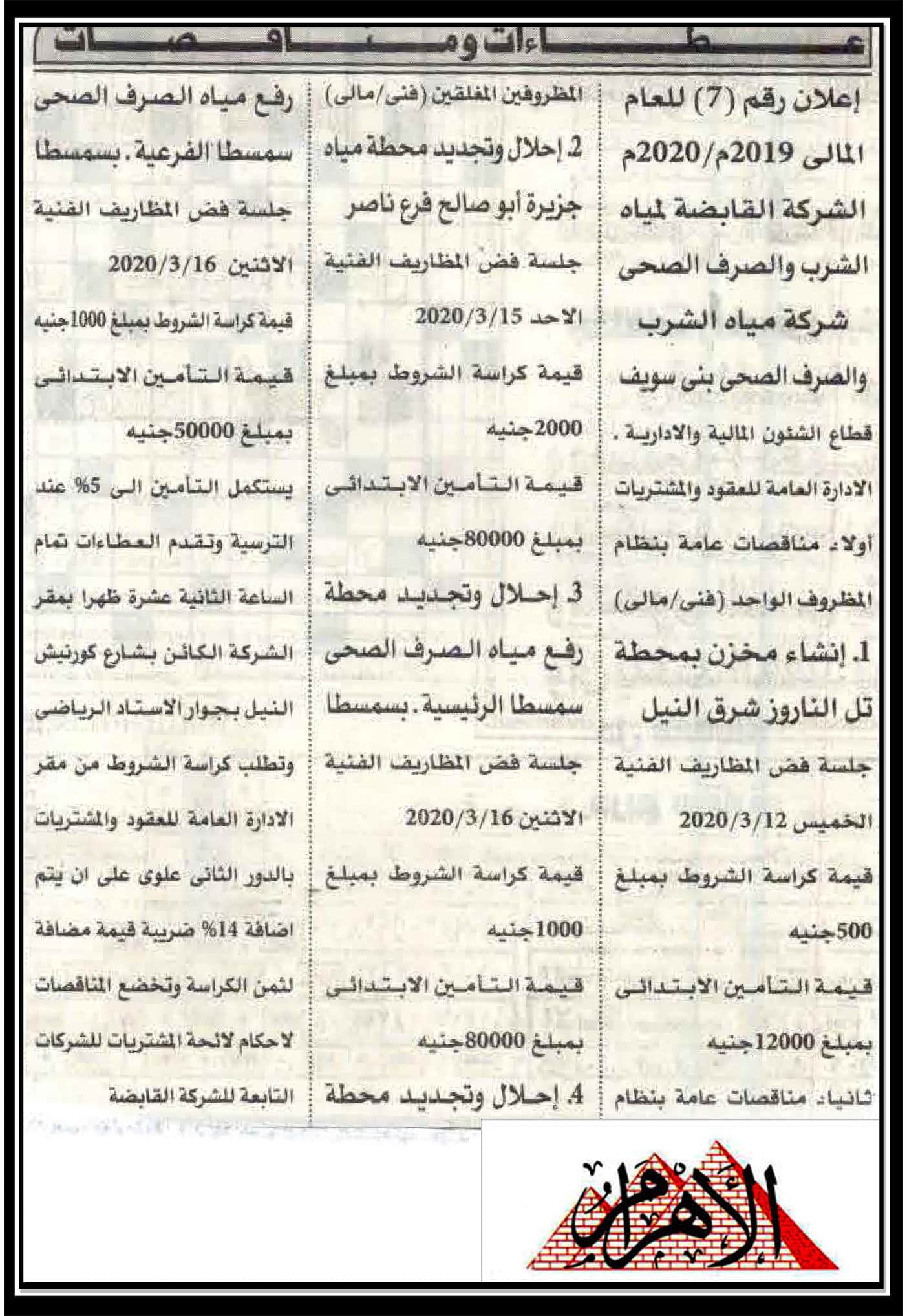 مناقصة عامة : ” شركة مياه الشرب والصرف الصحي ببني سويف “ 27/02/2020|Tags: جريدة الاهرام| Related Posts مناقصة عامة: شركة مياه الشرب والصرف الصحى بمطروح 12/01/2026 مناقصة عامة: شركة مياه الشرب والصرف الصحى بكفر الشيخ 01/01/2026 مناقصة عامة: شركة مياه الشرب والصرف الصحى بمحافظات القناة 01/01/2026 مناقصة عامة: شركة مياه الشرب والصرف الصحى بالأقصر 24/12/2025 مناقصة عامة: شركة مياه الشرب والصرف الصحى بالشرقية 23/12/2025 مناقصة عامة: شركة مياه الشرب والصرف الصحى بالشرقية 18/12/2025 مناقصة عامة: شركة مياه الشرب والصرف الصحى بالأقصر 10/11/2025 مناقصة عامة: شركة مياه الشرب والصرف الصحى بالمنيا 05/11/2025