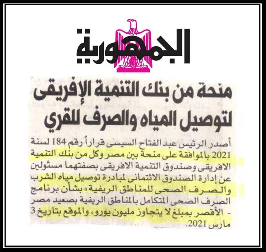 منحة من بنك التنمية الافريقي لتوصيل المياه والصرف بالقرى