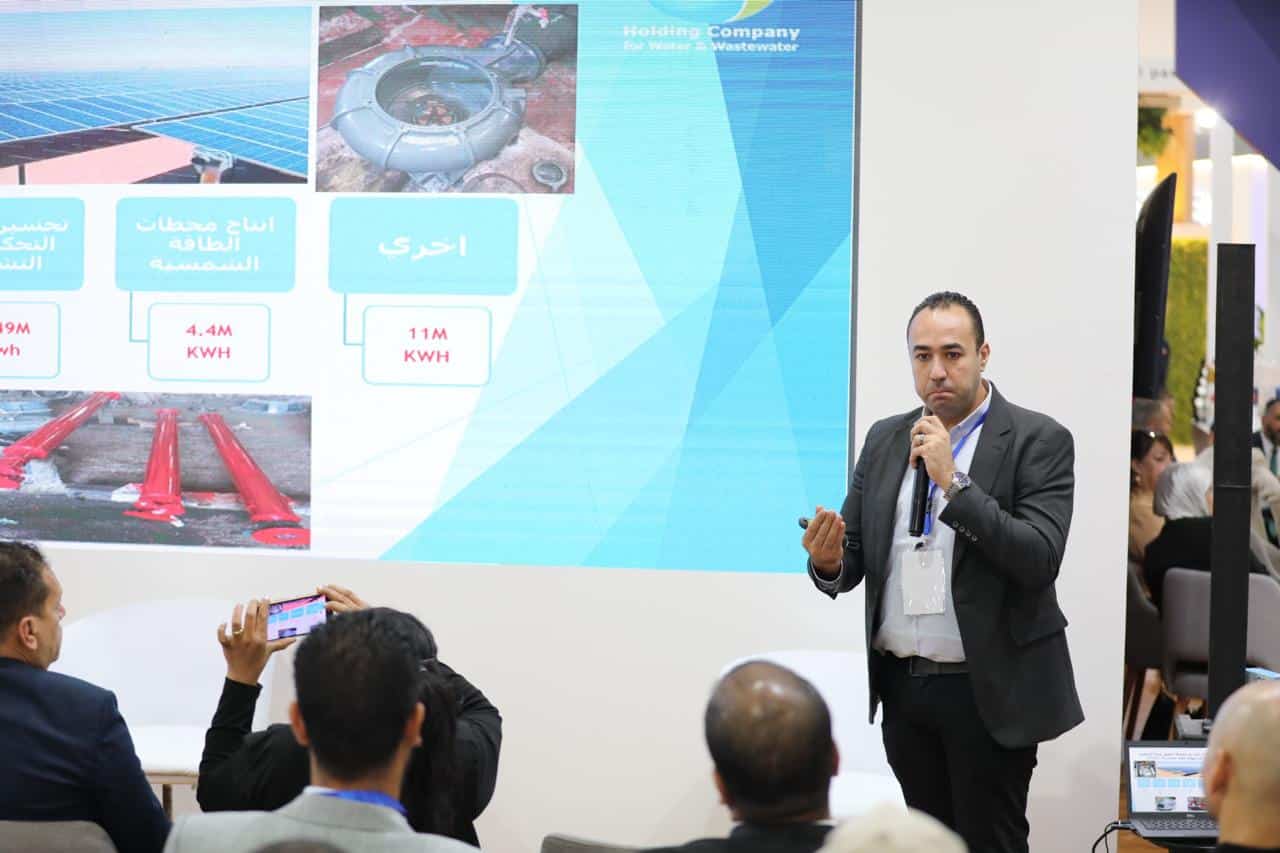 واستعرض كل من المهندس تامر رفقي كمال والمهندس علي الشربيني ترابط الطاقة والمياه والكربون، مع عرض تجارب عملية لاستخدام الطاقة الشمسية وتقنيات الترشيد لتحسين الأداء التشغيلي وخفض الانبعاثات في محطات المعالجة.