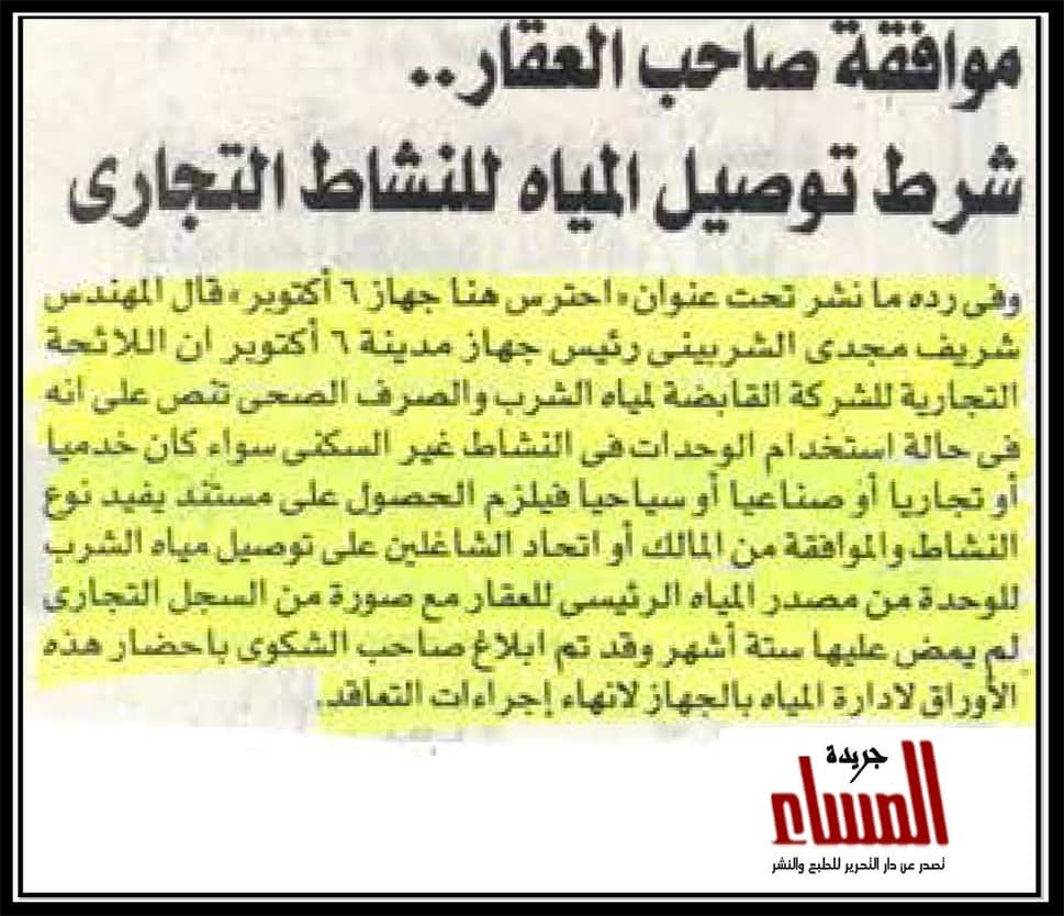 موافقة صاحب العقار… شرط توصيل المياه للنشاط التجاري .