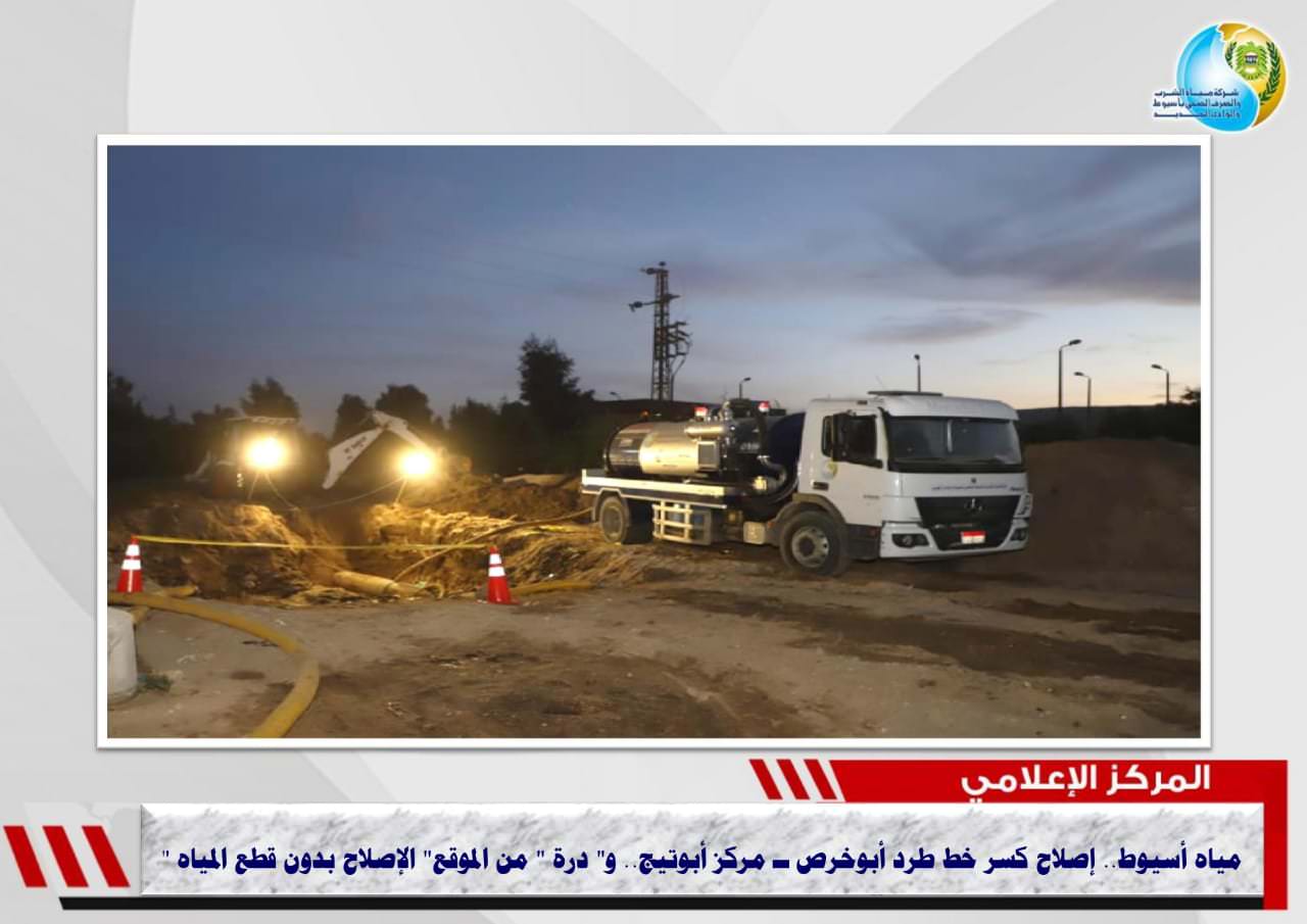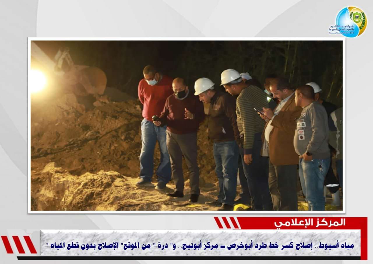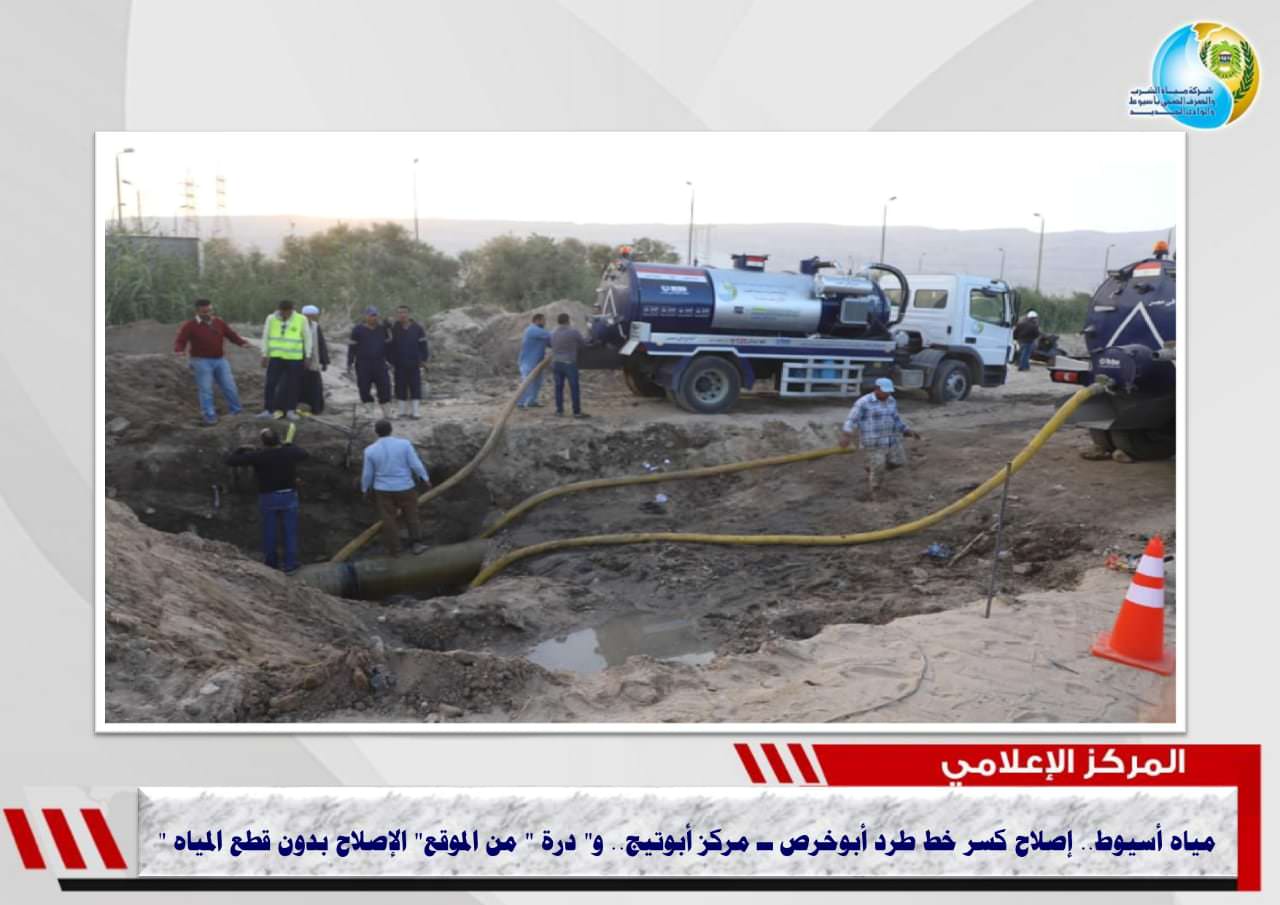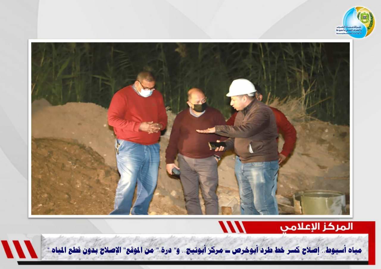 و تابع اللواء أركان حرب المهندس هشام درة ، رئيس مجلس الإدارة والعضو المنتدب لشركة مياه الشرب والصرف الصحي بأسيوط والوادى الجديد، على الطبيعة أعمال الاصلاح ، مشدداً على أهمية التعامل مع الموقف بكل دقه وسرعة.