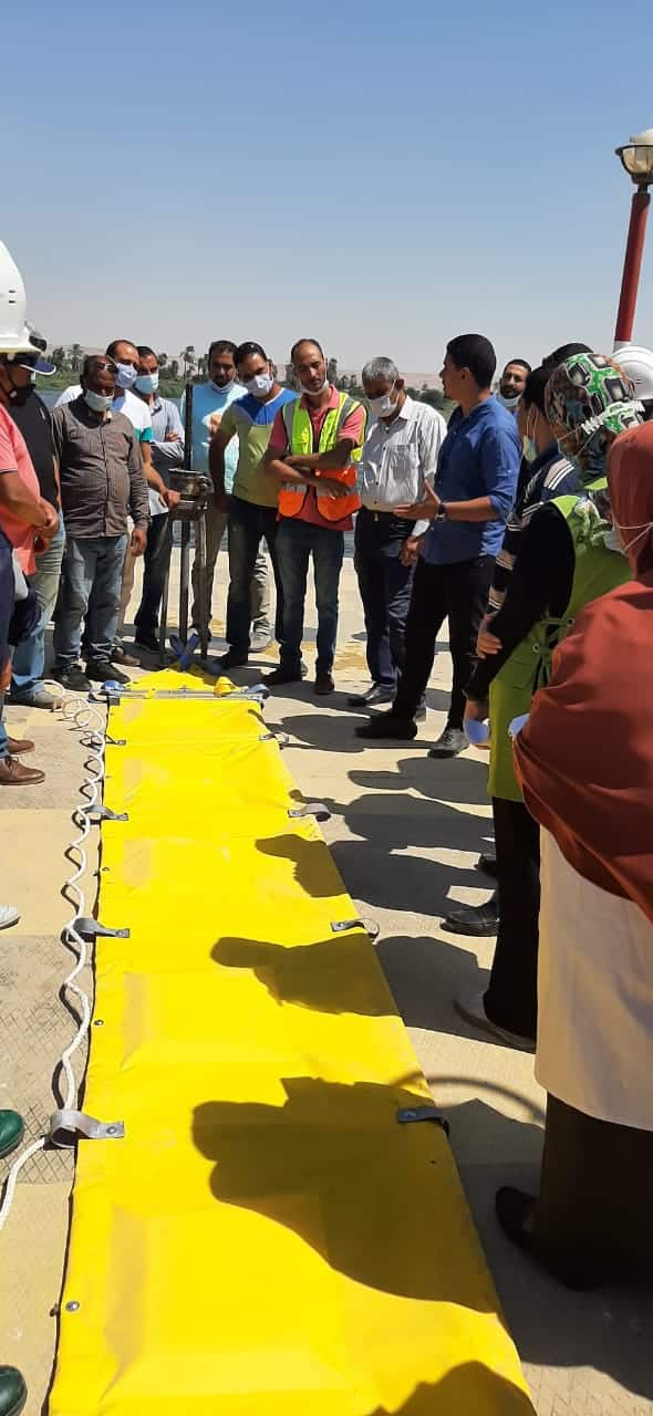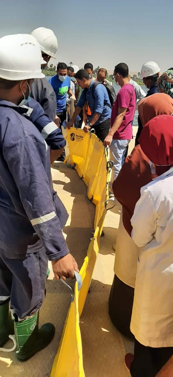 مياه أسيوط: بتكلفة ٧٠٠ ألف جنيه حواجز مطاطية وماصة للمواد البترولية لمأمونية المياه بخمسة محطات.