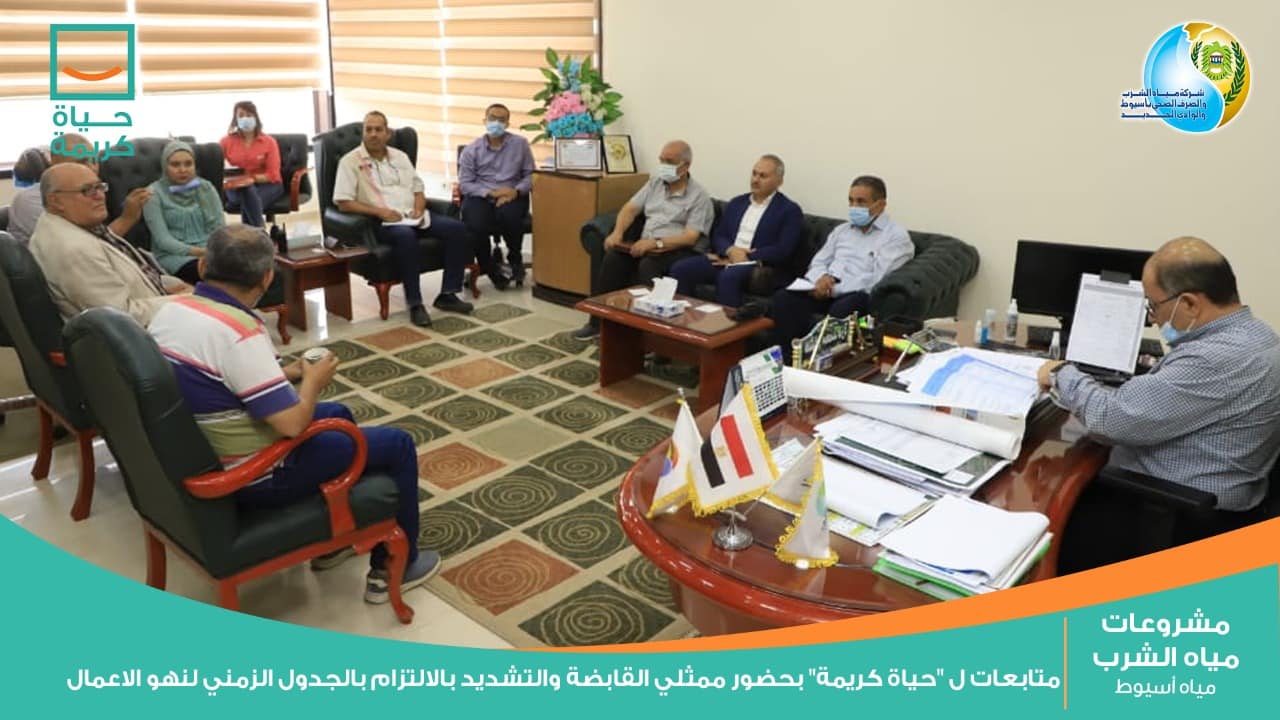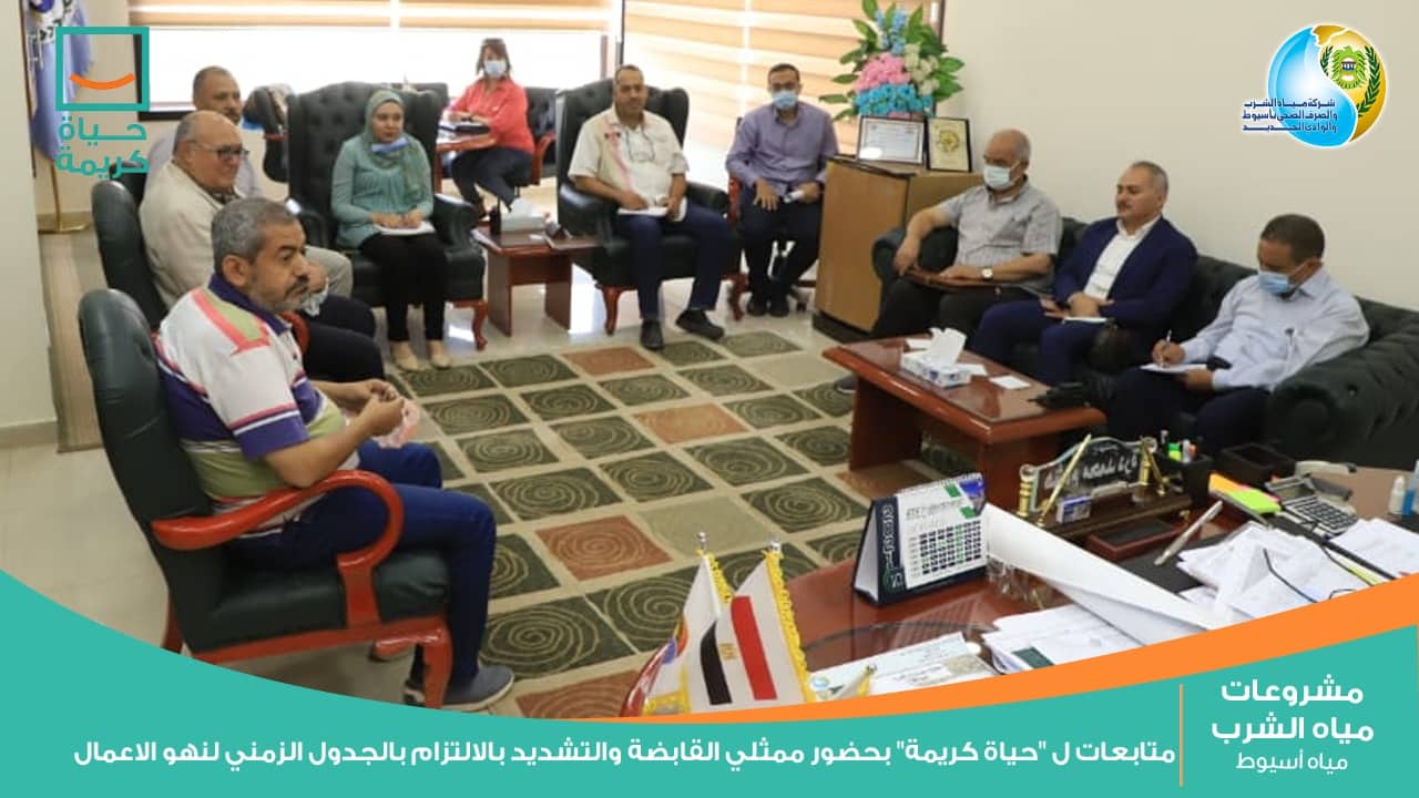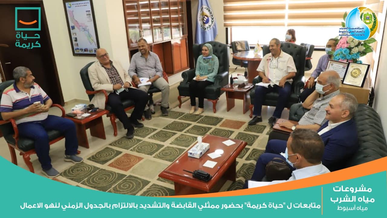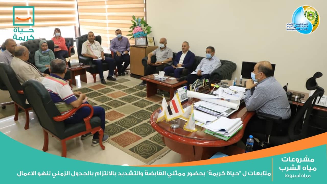 عقدت شركة مياه الشرب والصرف الصحي بأسيوط والوادي الجديد إجتماعاتها الدورية لمتابعة سير الأعمال التنفيذية للمشروعات القائمة بمبادرة حياة كريمة الرئاسية والتى تسعي إلى تحسين مستوى المعيشة للقرى الأكثر احتياجاً بكافة أرجاء المجتمع المصرى، بحضور لواء ا .ح مهندس هشام درة محمد رئيس شركة مياه الشرب والصرف الصحي بأسيوط والوادى الجديد، وممثلى الشركة القابضة لمياه الشرب والصرف الصحي، ومجموعة من استشاري المشروعات وذلك لمتابعة الموقف التنفيذي ومعدلات الإنجاز بالمشروعات القائمة والتى تستهدف 7 مراكز بالمحافظة بإجمالي 149 قرية والتي ستشهد تطويراً شاملاً للبنية الأساسية والخدمات.