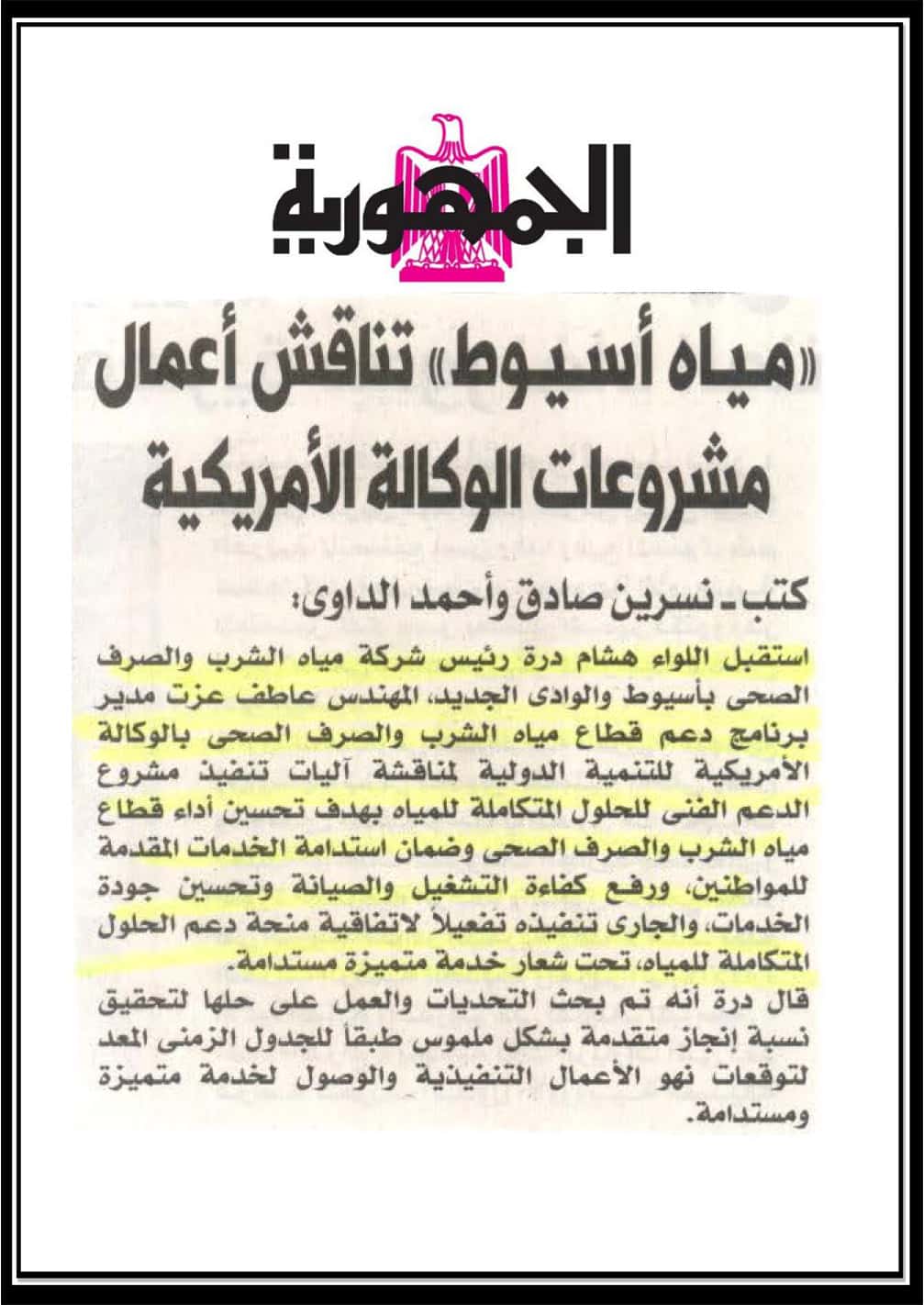 مياه اسيوط تناقش اعمال مشروعات الوكالة الالمانية