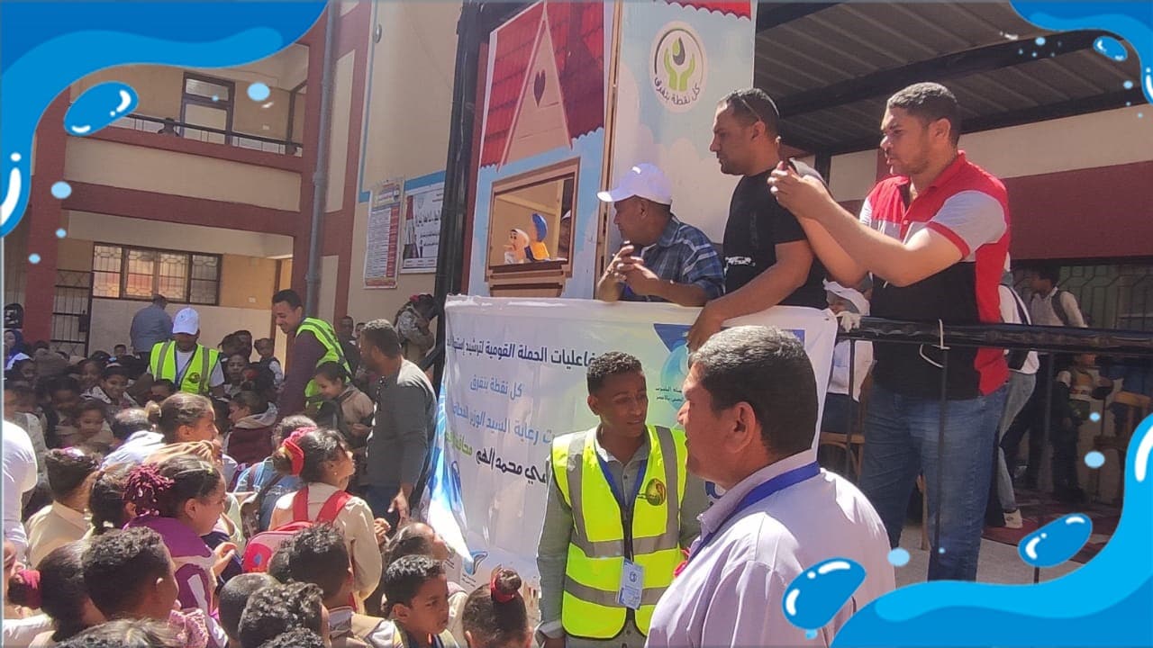 نظمت شركة مياه الشرب والصرف الصحى بمحافظة الأقصر، عددا من الأنشطة التوعوية، ضمن الأسبوع المائى بقرية الرياينة فى مدينة أرمنت، وذلك فى إطار الحملة القومية لترشيد استهلاك المياه، حيث بدأت بطابور الصباح وإلقاء الإذاعة المدرسية بكلمات من التوعية عن المياه، وحث الأطفال على اتباع سلوكيات صحيحة فى استخدام المياه.